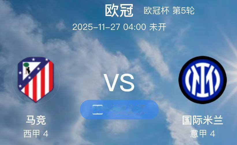 014 马竞 VS 国际米兰(情报)1.马竞本场比赛迎来了两名主力的回归,球队的实力得到了一定的加强。主力前锋朱利亚诺-西蒙尼(12场2球4助)已经确认可以回归,一门奥布拉克(12场)赛前也进行了训练,本场有望回归,一前一后两名主力的复出将会给马竞的实力带来加强,2.本场比赛马竞在后防线缺少两名关键主力,主力后卫勒诺尔芒(10场1球)和马科斯-略伦特(13场3助)均受伤缺席。其中马科斯-略伦特在上轮比赛中伤退,本场缺少两名防线主力的马竞可能存在防守问题。3.马竞最近的状态较为出色,他们已经在连续五场正式比赛中取得胜利,连胜给球队的士气带来了提升,本场他们可能会有更好的表现。4.国际米兰在周末面对AC米兰的德比战中输球,这场失利终结了球队此前的四连胜战绩,给球队的士气造成了较大的打击本场比赛国米的发挥可能不会太好。国际米兰本场比赛依旧缺少两名主力,主力后卫邓弗里斯(11场1球)、中场姆希塔良(7场)因伤缺席,球队的实力可能受到一定的限制,本场他们的表现可能不佳。