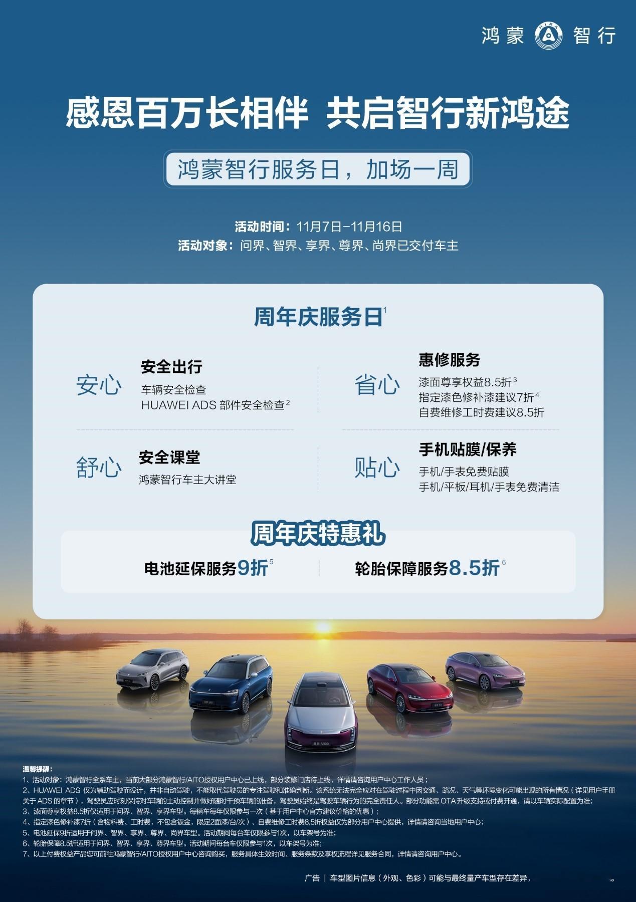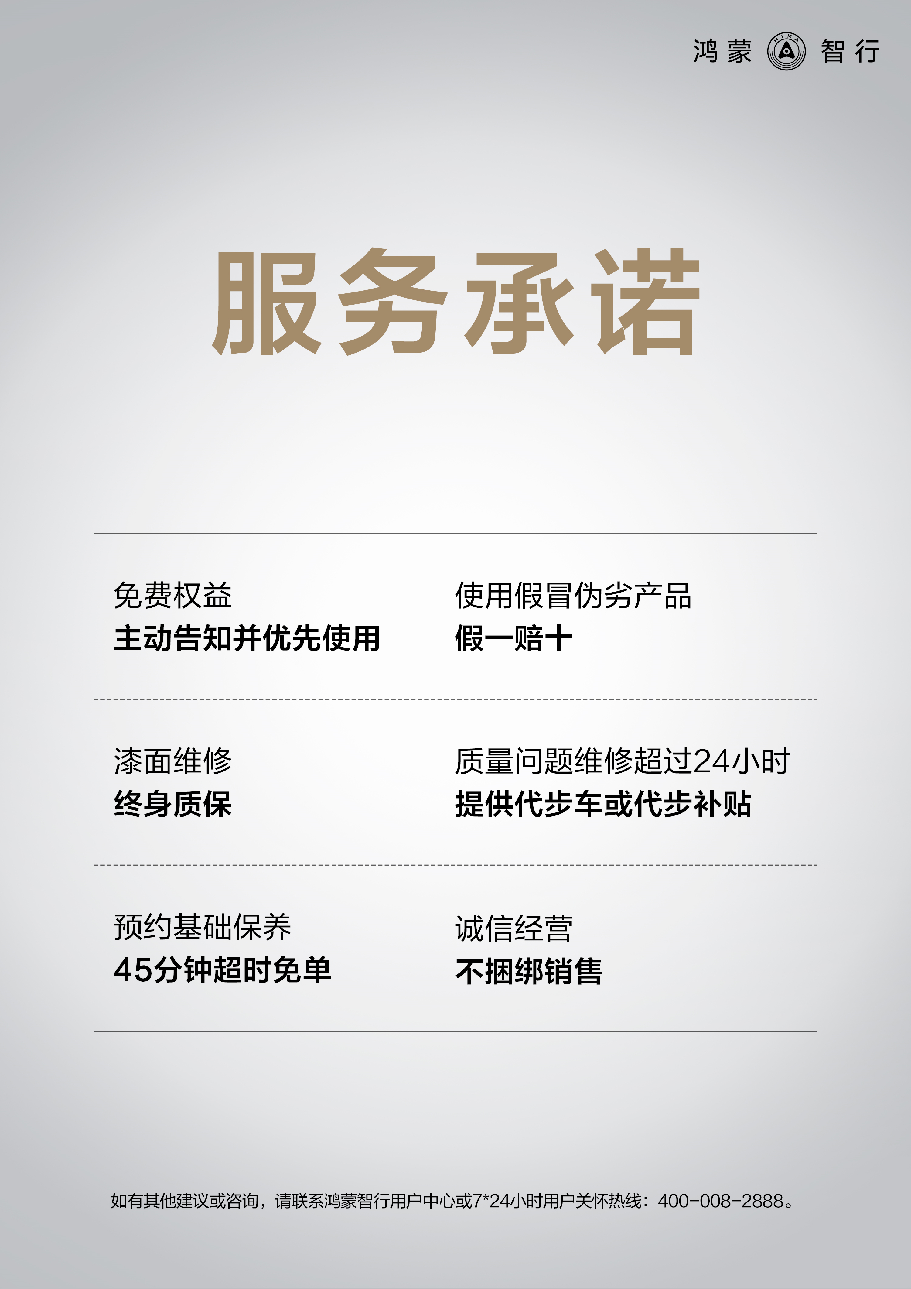 为什么年轻人买车越来越看重服务不知道大家有没有遇到过在偏远路段车辆趴窝的突发状况,这种麻烦事鸿蒙智行直接用超预期服务把保障卷到了新高度。甘肃/青海/新疆等西北五省不仅有7×24小时道路救援,陷沙地、爆胎都能火速响应,轮胎坏了还能免费递备胎。就算不想开返程,也能安排托运服务!日常用车更不用愁,质量问题维修超24小时就给代步车/补贴,漆面终身质保、零配件假一赔十,再加上1小时提车、45分钟保养超时免单,从提车到养车,每一环都把“超预期”焊死,这才是真·用车无忧啊!