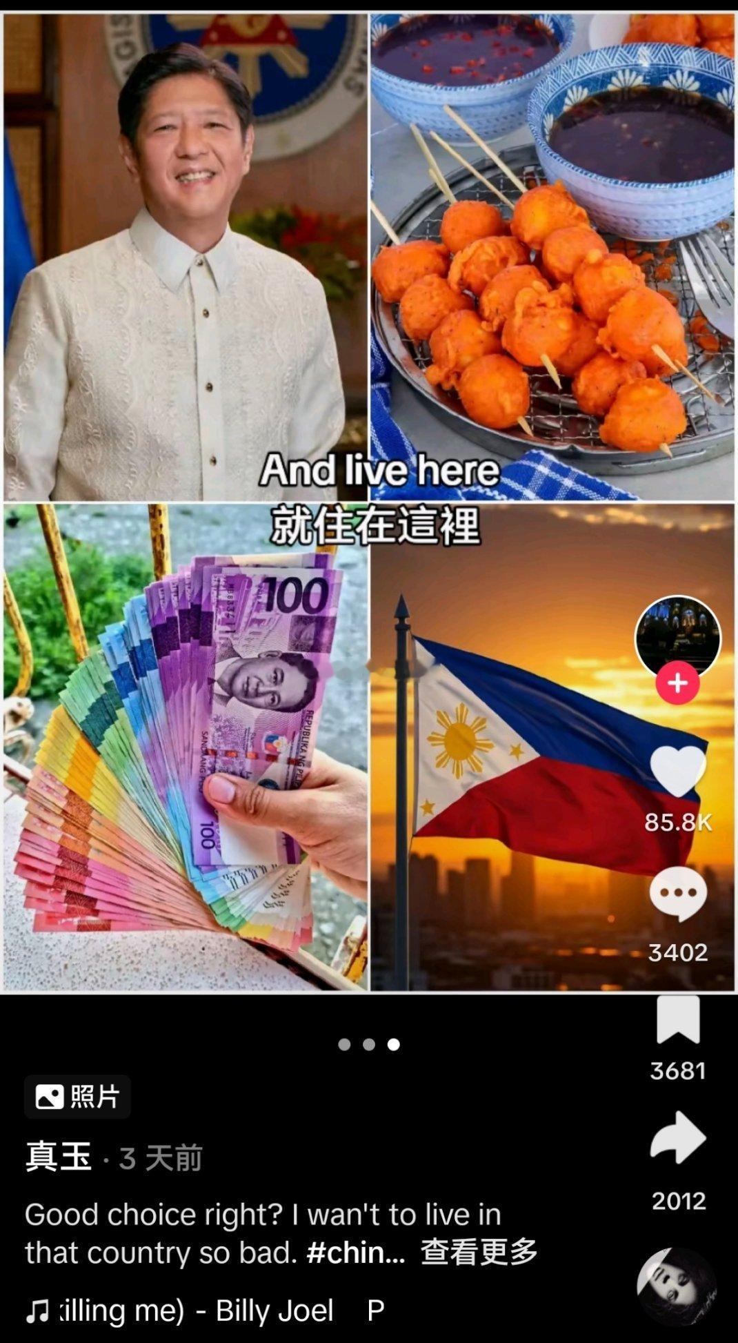 外网上的菲律宾人真的很热衷反串成中国人,说“我要努力学习,这样就可以离开中国,润去菲律宾”(图4图5,他说是他的自拍,也不知道是在哪里盗的网图)