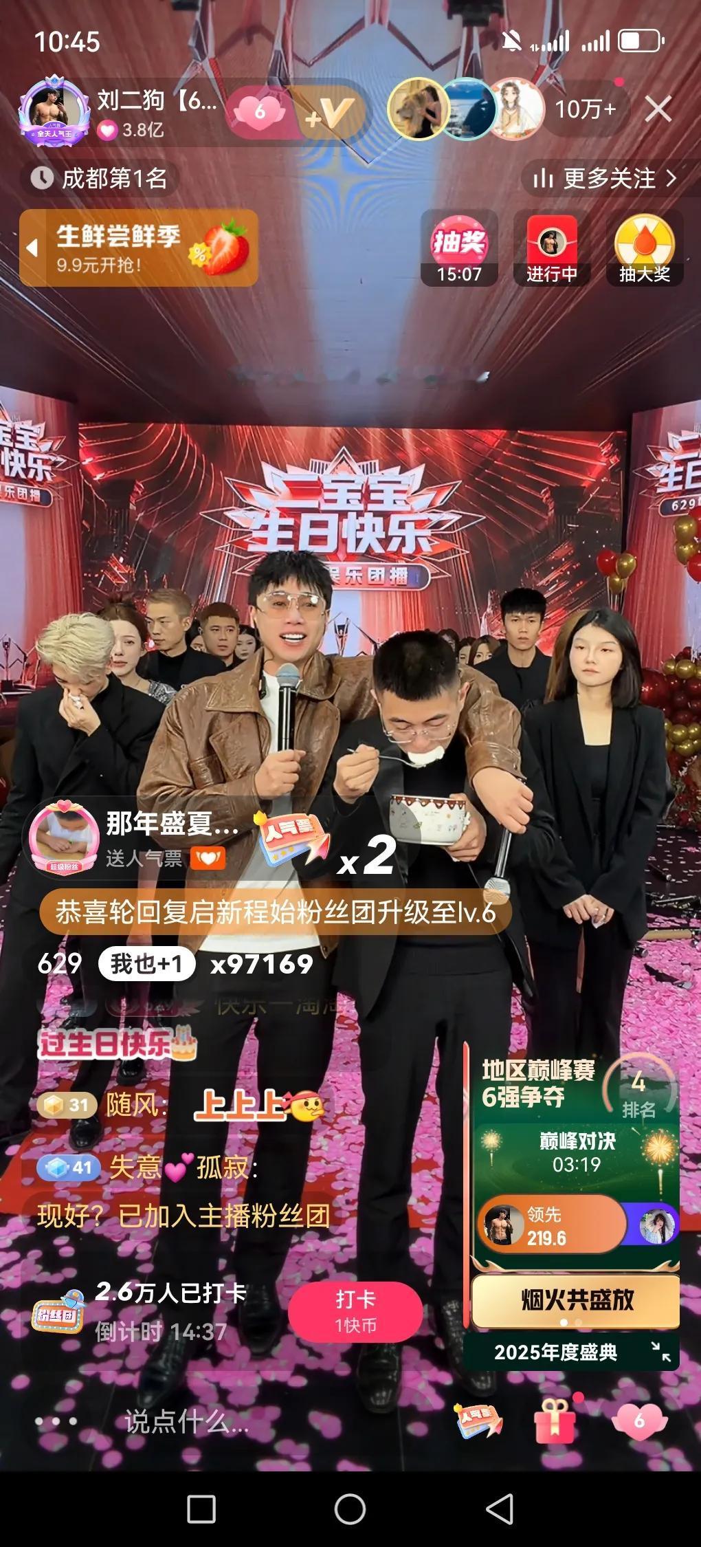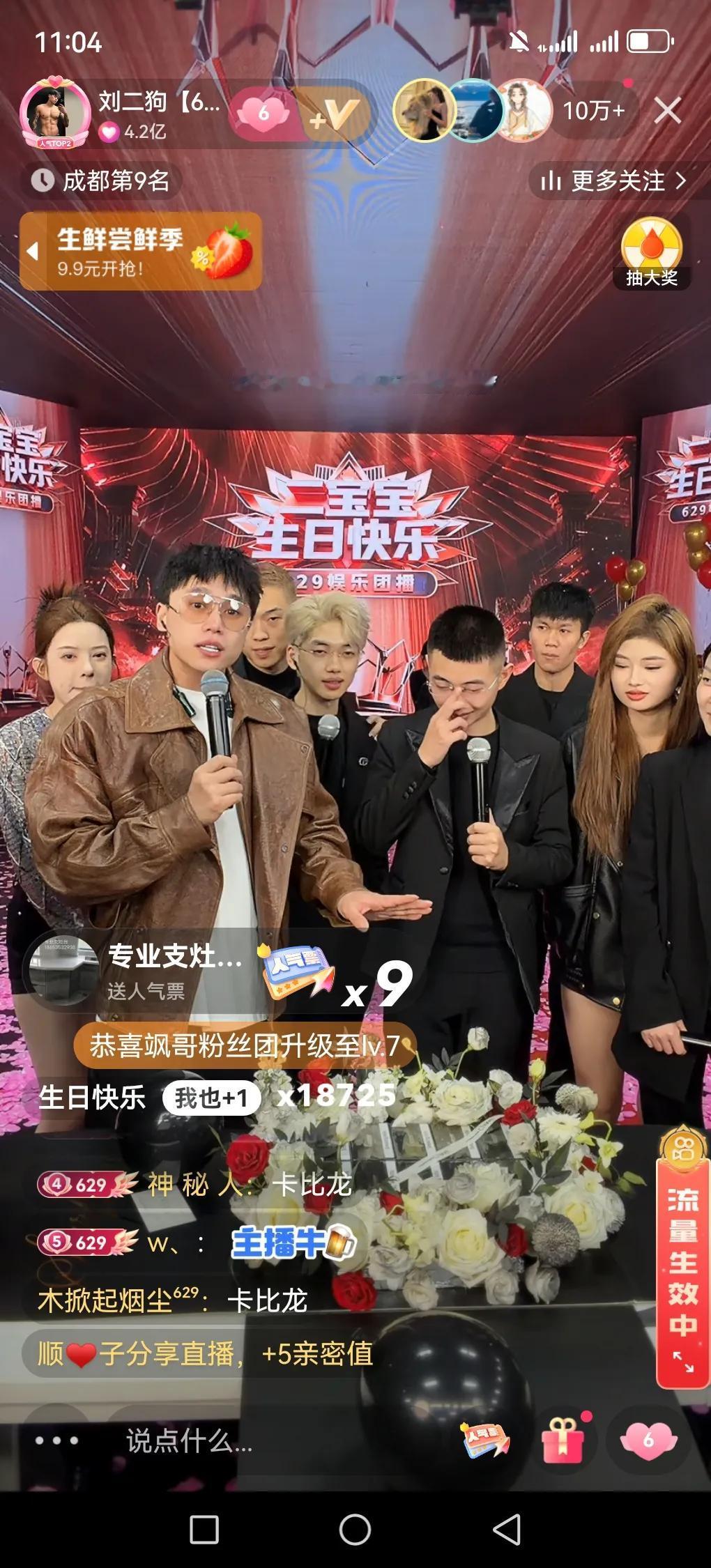 今天是629团队老二的27岁生日,刘二狗给老二全网最大画面,专门给老二开直播过生日,刘二狗当年封号,公司所有主播有很多都看刘二狗大势已去都离开了,刘二狗也没起诉任何徒弟,只有刘尚,樊二娃,鑫鑫,小磊,老二在刘二狗最落魄的时候陪刘二狗,当时真的不赚钱,如今,刘二狗回来了并没有抛弃这些徒弟,说实话这些徒弟才艺不是特别好,但刘二狗花了不少心思和钱捧他们,这份感情是珍贵的,如今,刘二狗也是资产上亿,徒弟们都几百万的赚,也都好起来了,所以老二和刘二狗回想以前都是泪流满面,老二说家里穷的屋子都漏水,自己穷怕了 感谢师傅刘二狗,刘二狗徒弟们大多数送烟,而师傅刘二狗送了三样走心礼物,第一外国的烟提前十天国外定制的,第二,华为三折叠手机,第三两百万粉丝,不得不说,刘二狗和徒弟们的师徒关系真铁。