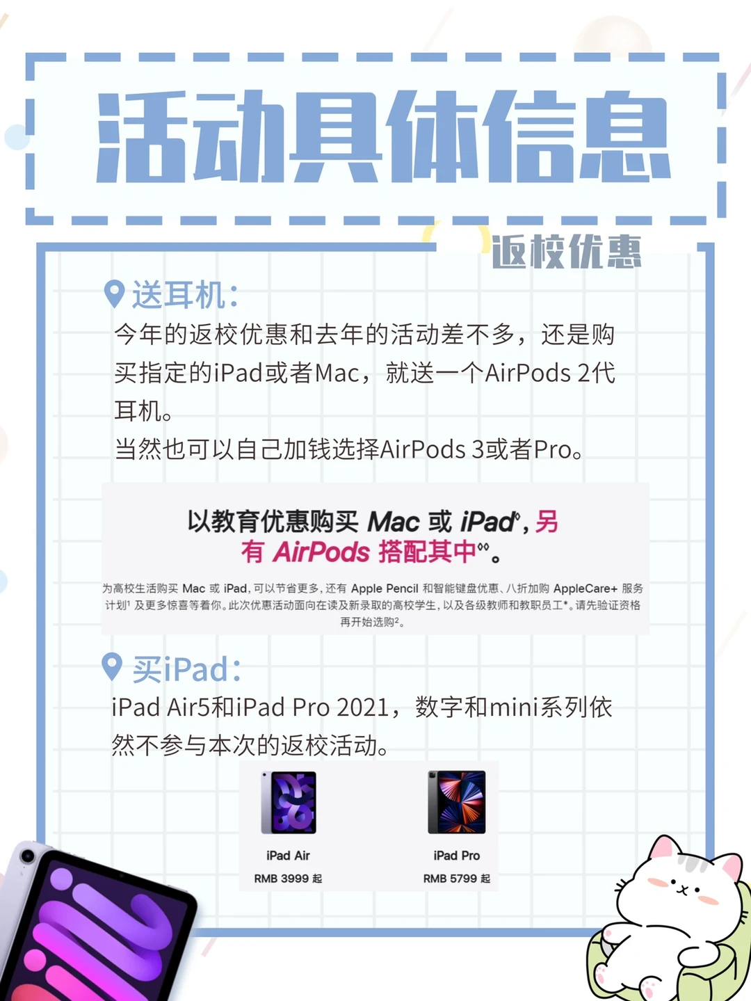 2022年苹果🍎返校优惠活动开始了,时间范围是7月14日到9月26日,购买指定的iPad或者Mac,送一个AirPods 2代耳机! 如果是购买iPad[偷笑R],依然还是只有iPad Air或