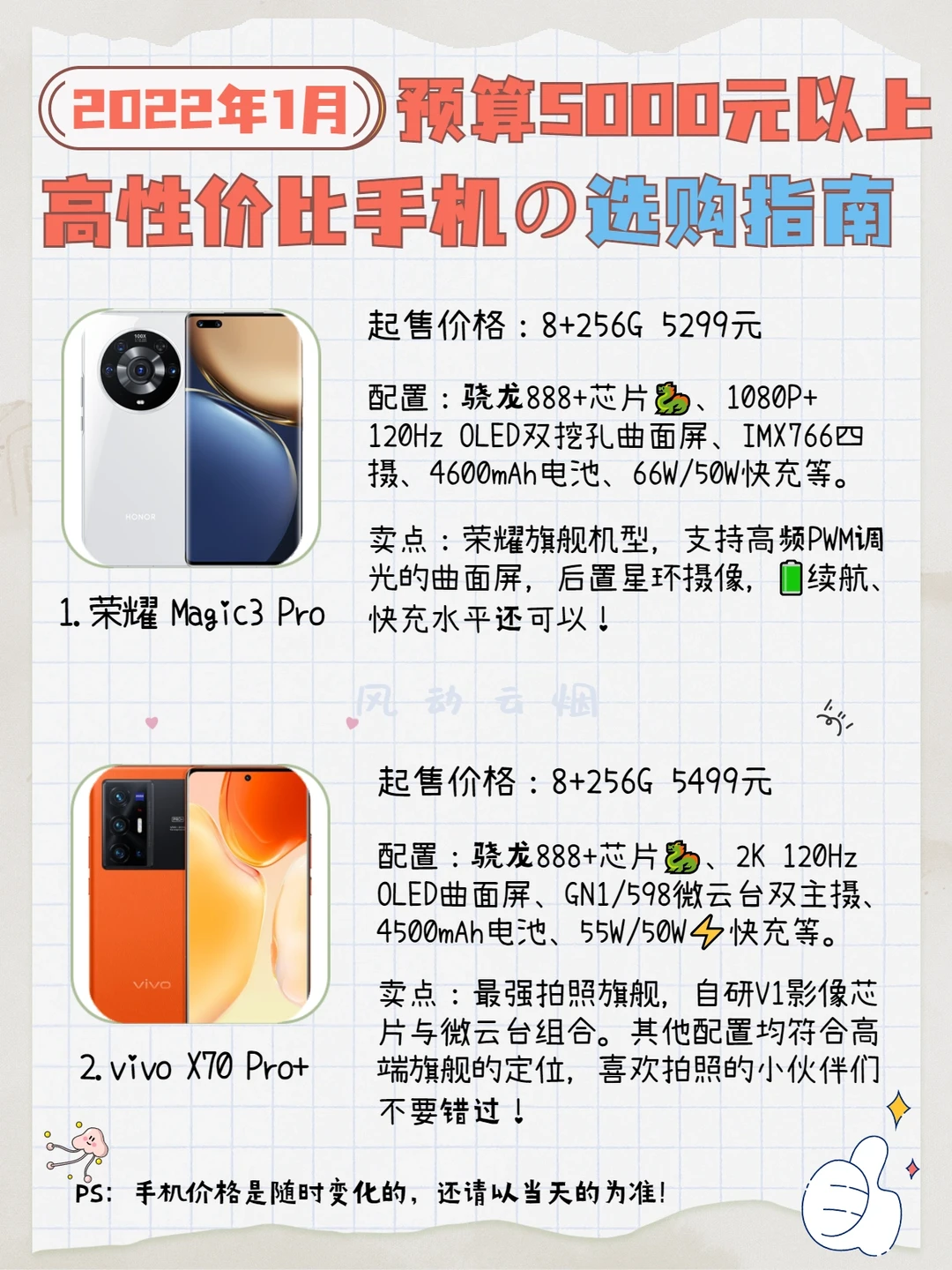 2022年1🈷️手机推荐最后一弹来啦😘,本期推荐的高性价比手机一共有5⃣️款,它们分别是: 1⃣️荣耀Magic3 Pro:5299元💰起售; 2⃣️vivo X70 Pro+:5499