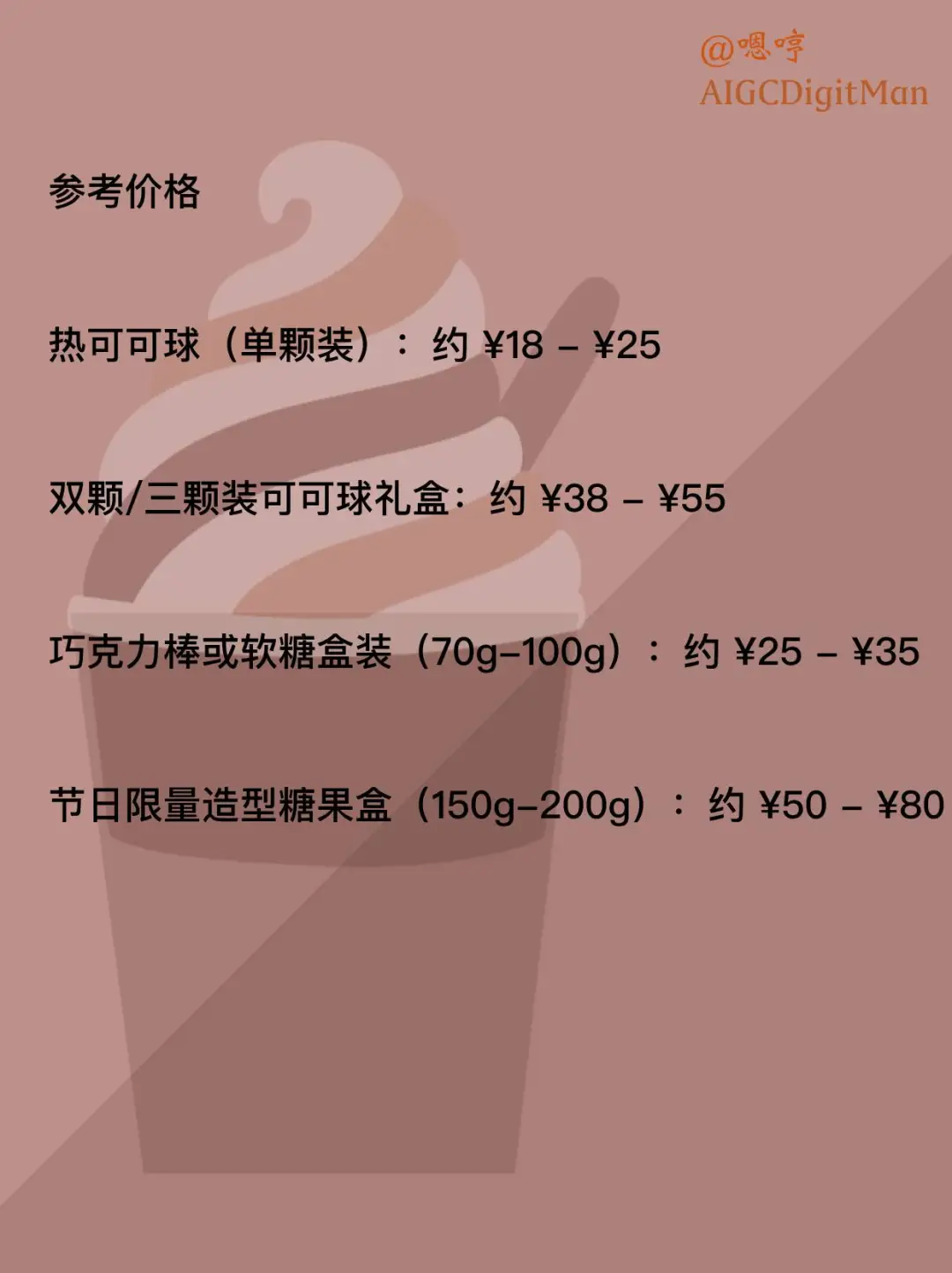 热可可球(单颗装):约 ¥18 - ¥25