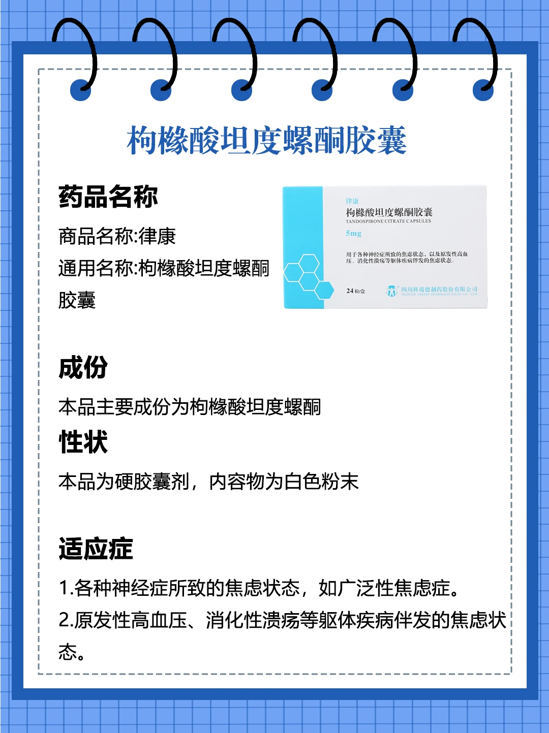 今日打卡学习➡️:枸橼酸坦度螺酮胶囊
