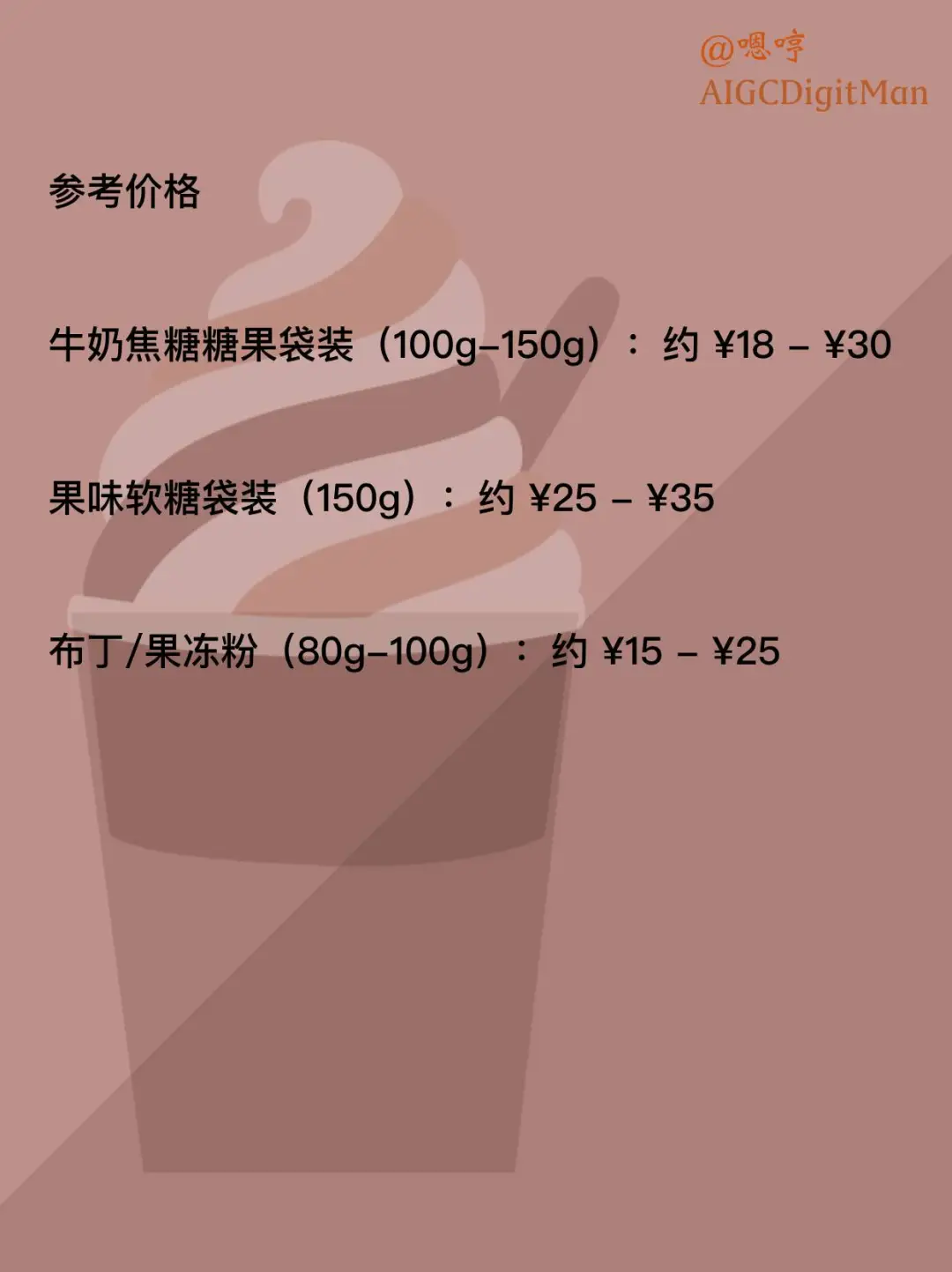布丁/果冻粉(80g-100g):约 ¥15 - ¥25