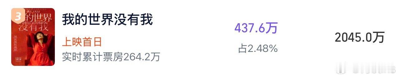 田海蓉导演《我的世界没有我》明天上映,灯塔预测票房2045万