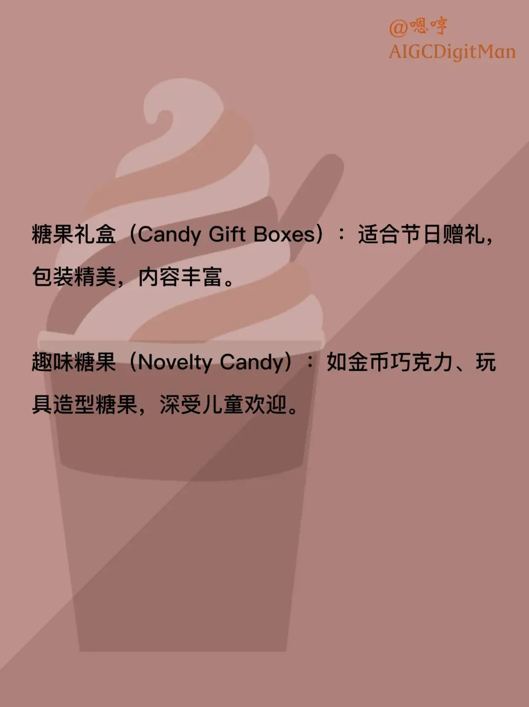 趣味糖果(Novelty Candy):如金币巧克力、玩具造型糖果,深受儿童欢迎。