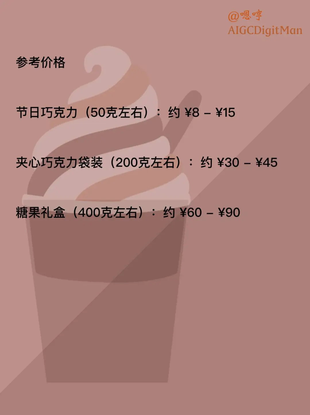 节日巧克力(50克左右):约 ¥8 - ¥15