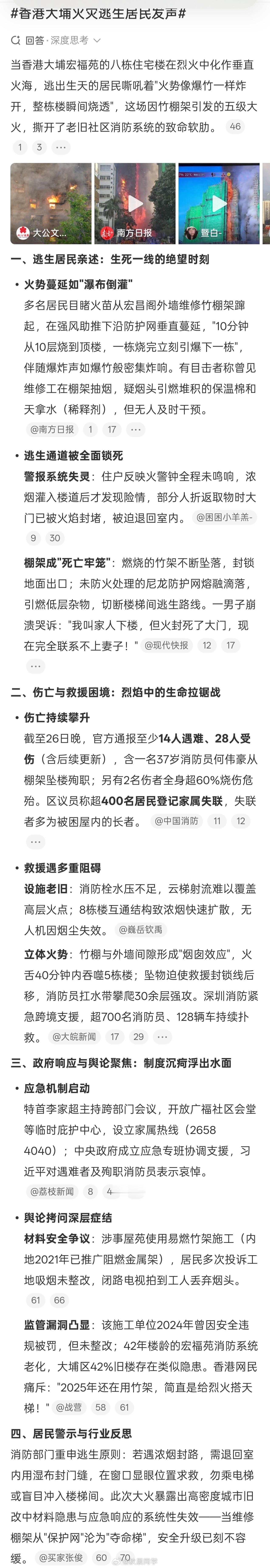 香港火灾 “闭路电视拍到工人丢弃烟头”外墙的棚架是易燃竹架成“死亡牢笼”(内地2021年已经推广阻燃金属架)再加上42年楼龄的消防系统老化......天啊,痛心,年底了,希望大家都平平安安