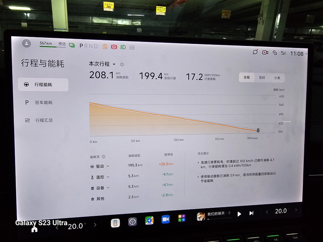 小米续航达成率在高速上比在城区还要高啊 今天从清远送人到广州南站,走佛清从高速,全程按导航走,能用NOA的就使用NOA,速度设置为按导航要求上限增加5%,也就是高速限速100,实际跑到105公里(导航显示),昨天电量充到100%,满载四人从地下车库出发,到达地点广州南站东进站口,停车不熄火(广州南站东进站口下来)我没下车,我老婆下车帮忙拿行李,因为后面车催促停车时间较短,马上原路返回(返回时车上2人),因红绿灯转弯走错了直行,所以稍绕了一下,所以最后显示如图行驶实际路程为199.4公里,消耗208.1公里(充满电显示能跑575公里,现在显示还能能跑366公里)95.82%。按这个标准估计高速上跑550公里应该没问题,这个正好每跑4个小时就进一下服务器,休息吃饭充电说实话这个数据比我一直在城区跑感觉更好,达成率更高,基本上打消了我的续航焦虑问题!