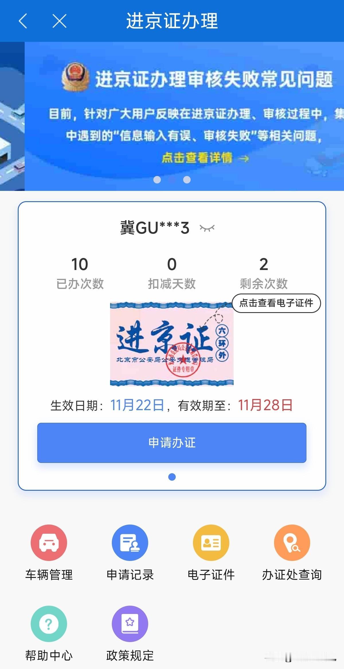 来北京的外地牌,都知道要办进京证吧。可是在北京工作的该怎么办?一年12次的六环内进京证够用吗? 这个月快完了,还有一个月。又有了12次的机会,我的还有两次没用呢! 知道珍贵,所以轻易不敢用。每年我都是省着用,就怕急时没得用。 12次的六环内进京证你还有几次呢?
