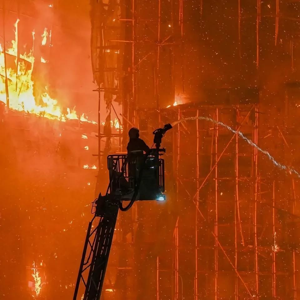 #香港商场草墙起火系烟头引发#【香港一商场数层楼高草墙起火!消防处称系行人欲掐灭