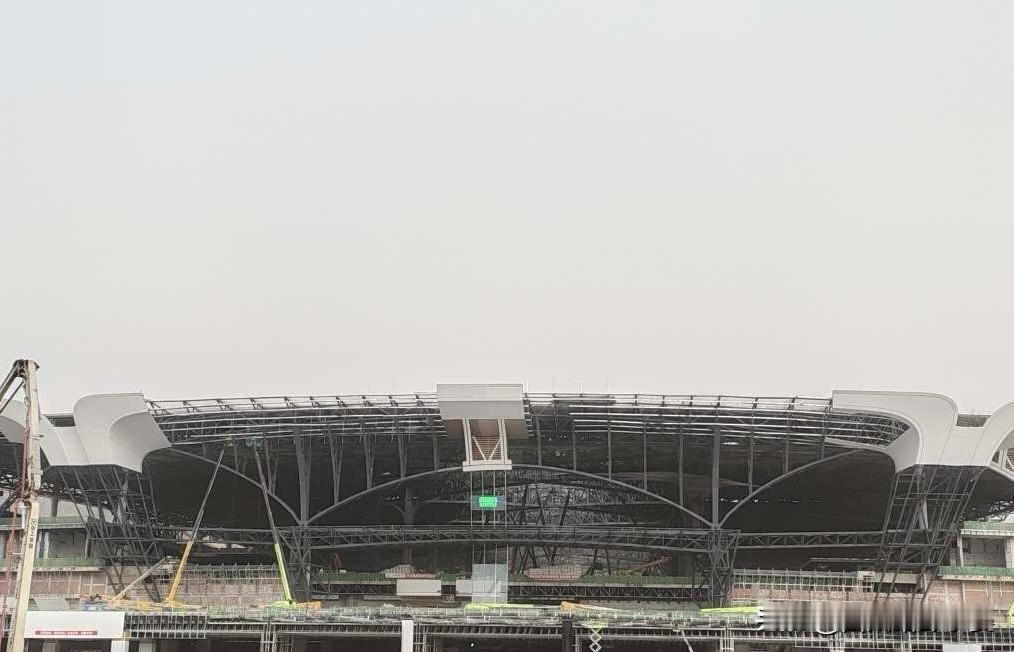 西安东站站房工地实拍图:未完工已显大气 站在西侧拍摄西安东站站房工地,镜头里的