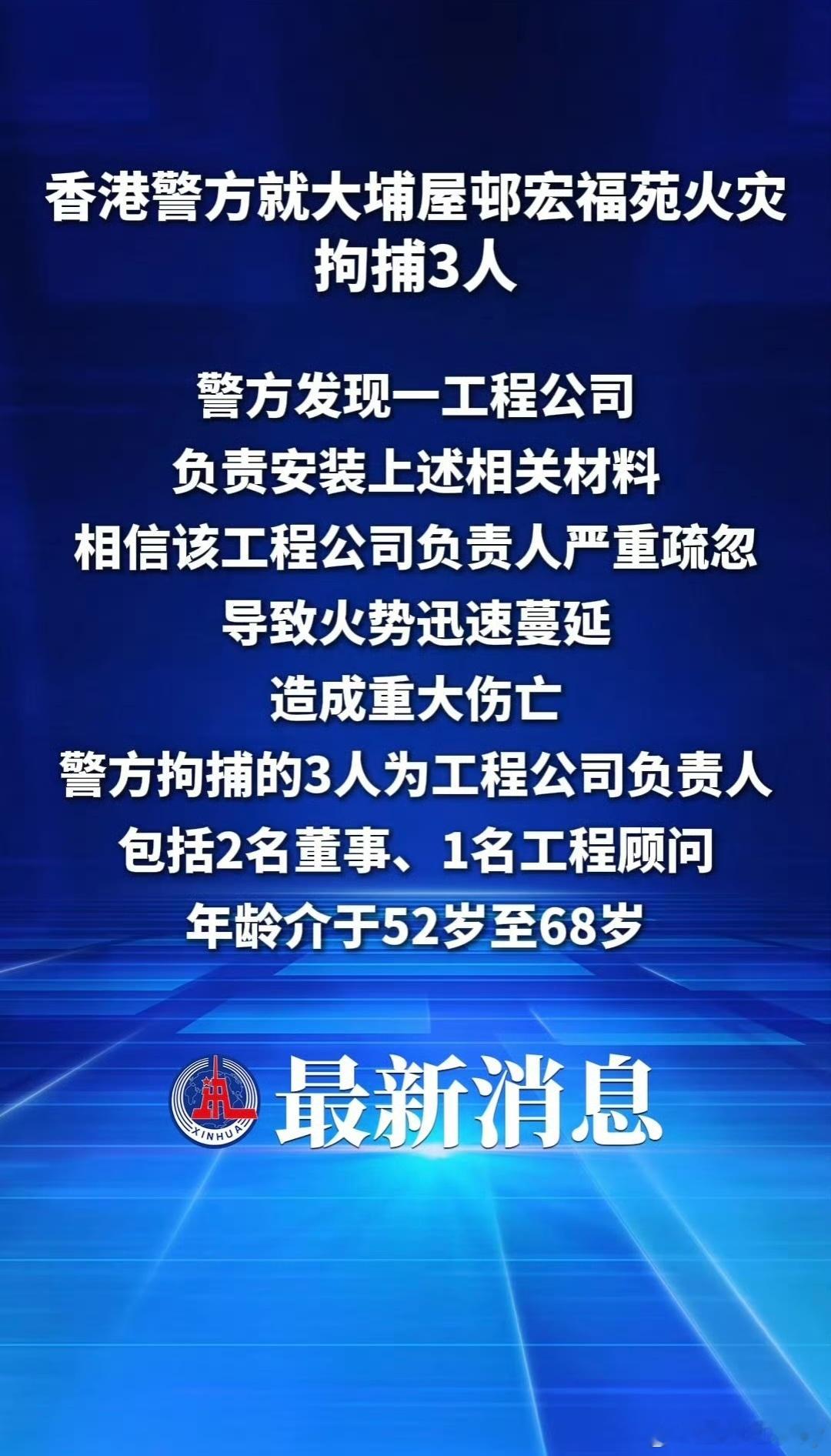 香港火灾已致44人遇难香港大埔宏福苑于2025年11月26日发生五级大火,火灾已致44人遇难,其中包括一名殉职消防员,另有至少45人受伤,部分伤者情况危殆。火势因建筑外墙维修所用的竹制脚手架、防护网、塑料布及发泡胶等易燃材料迅速蔓延,风势助推下短时间内吞噬7栋大厦。截至11月27日上午,火情基本受控,但搜救工作仍在持续,仍有超过200人失联。警方已拘捕3名涉事工程公司负责人(2名董事及1名工程顾问),年龄介于52至68岁,涉嫌“误杀”,调查指向其严重疏忽导致防火材料不合格、火势失控。在智搜上看到的,希望不要再有伤亡报出。