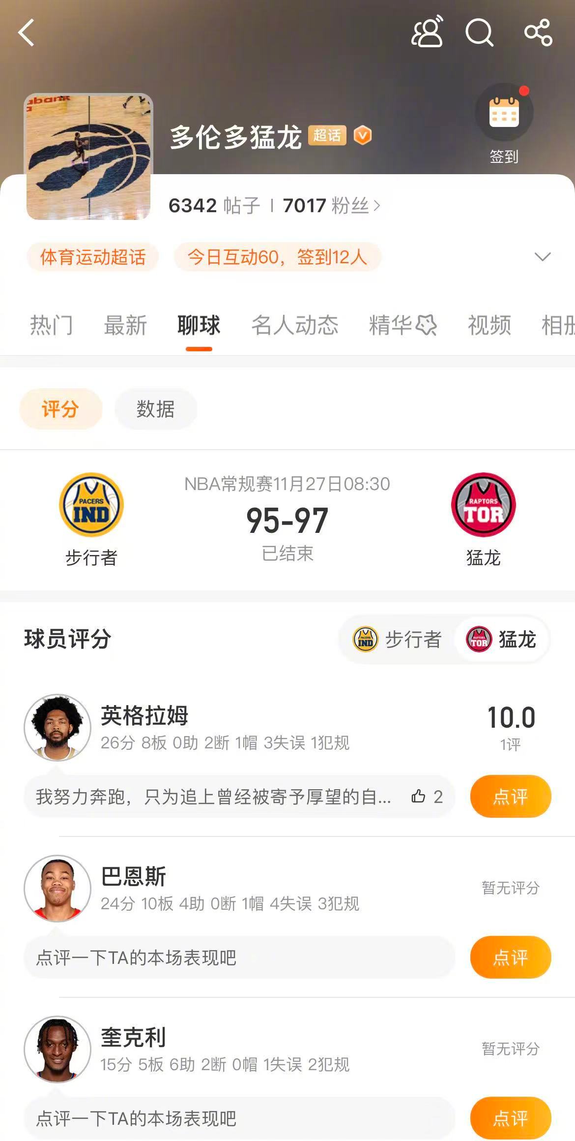 猛龙九连胜英格拉姆绝杀步行者 猛龙97-95战胜步行者,英格拉姆绝杀!英格拉姆26分8篮板,巴恩斯24分10篮板4助攻,奎克利15分5篮板6助攻。步行者方面,马瑟林15分3篮板3助攻,沃克13分,西亚卡姆11分。进入球队超话多伦多猛龙 和印第安纳步行者 对球员表现进行评分吧!