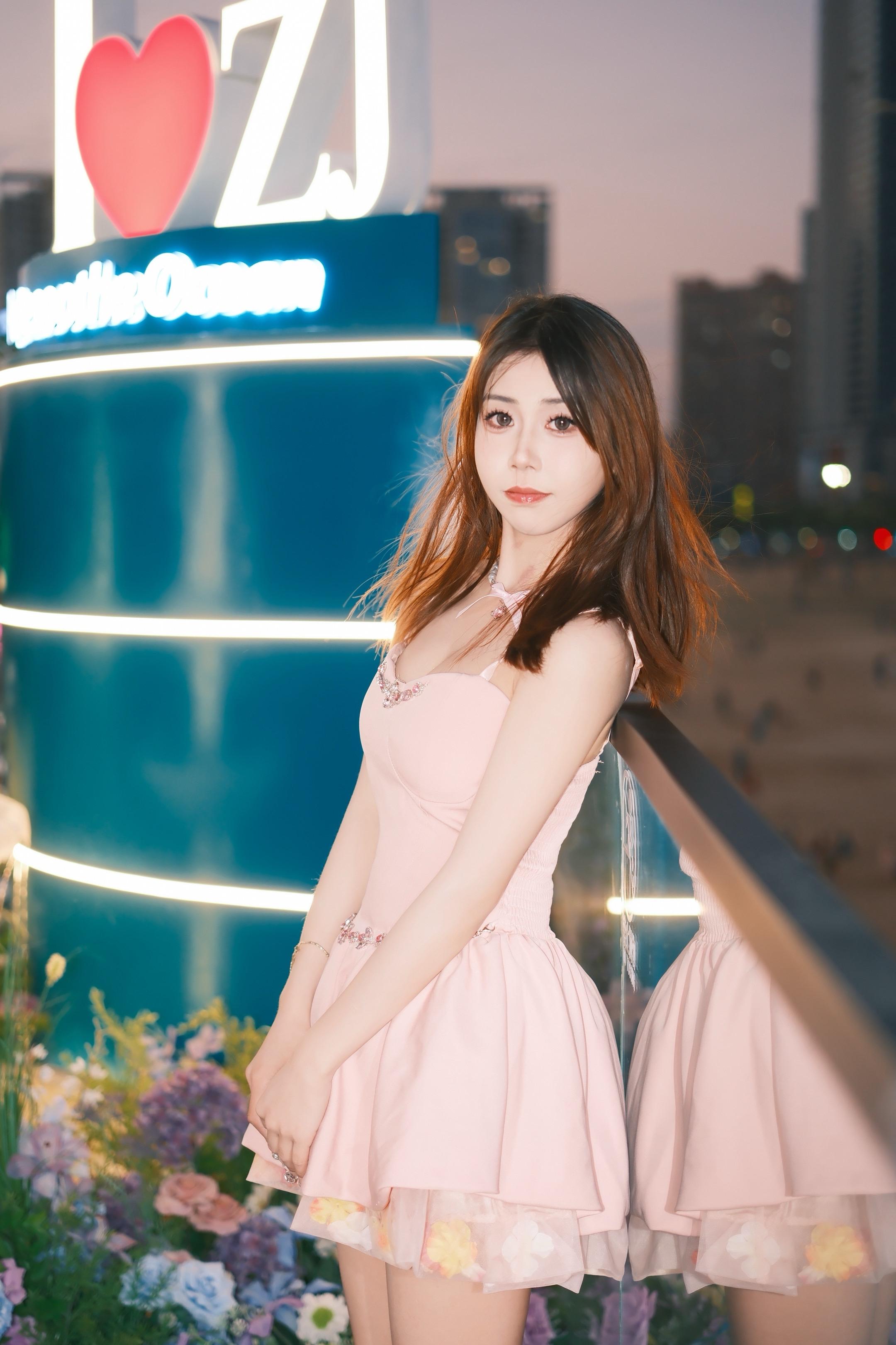 湛江互免约拍。在校园天台拍了组蓝色大扇子