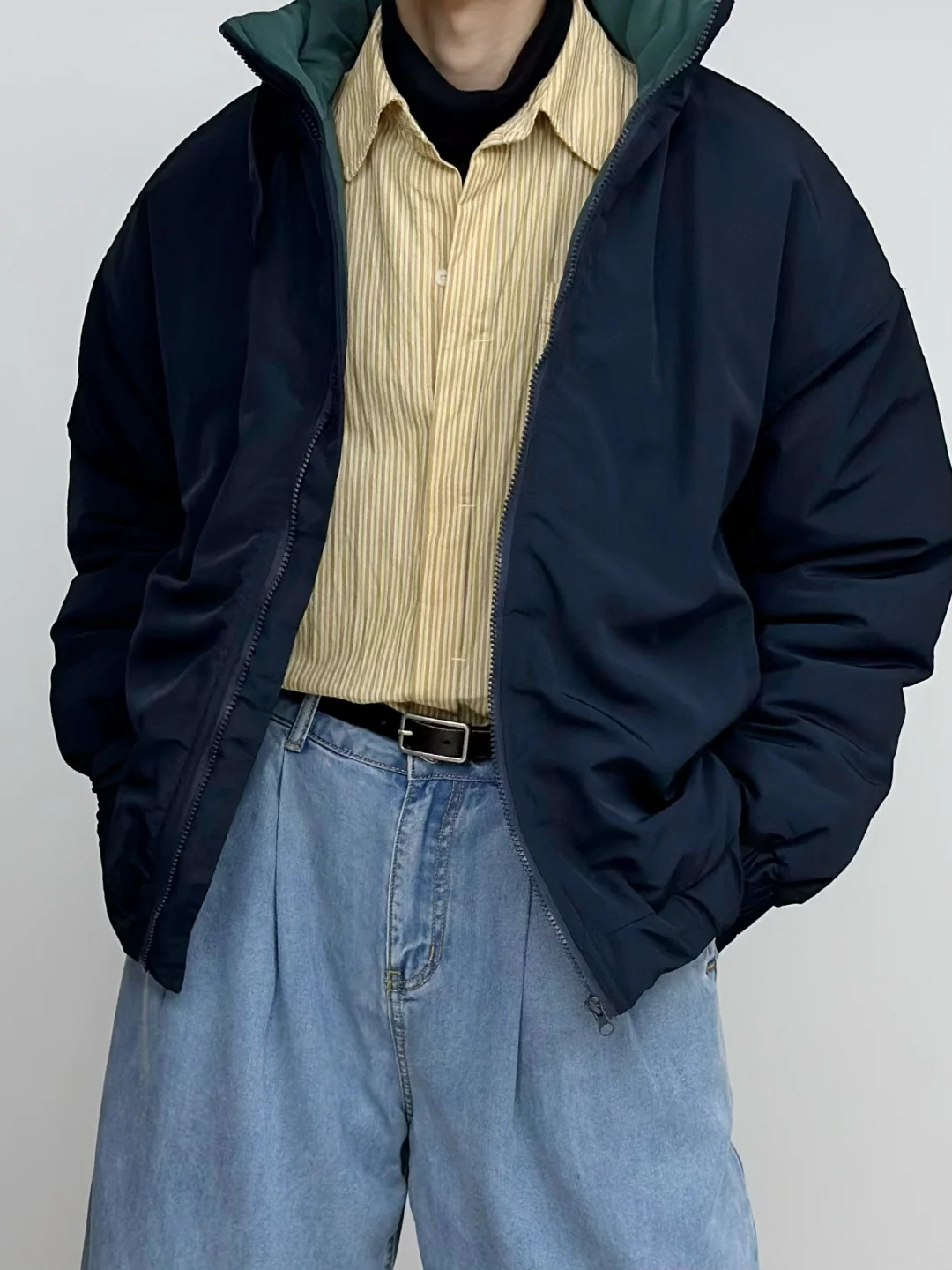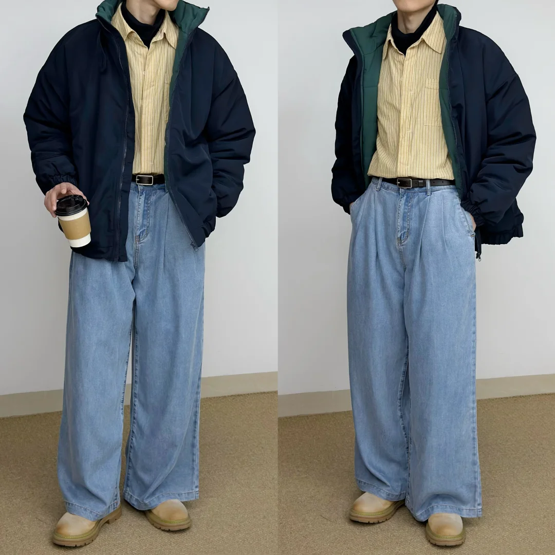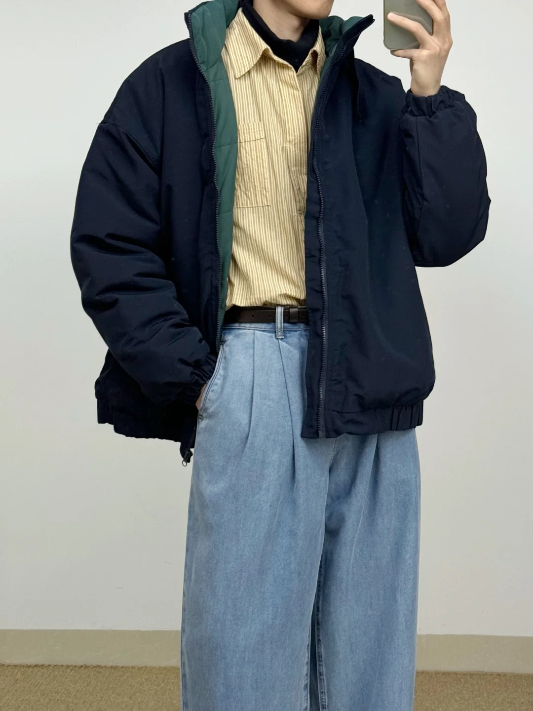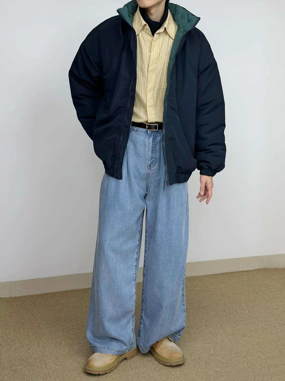 - 蓝色与黄色的组合 算是干净清新又亮眼🌟 廓形大棉服给的安全感 搭配牛仔裤与大黄靴 复古造型感这一块👌 -