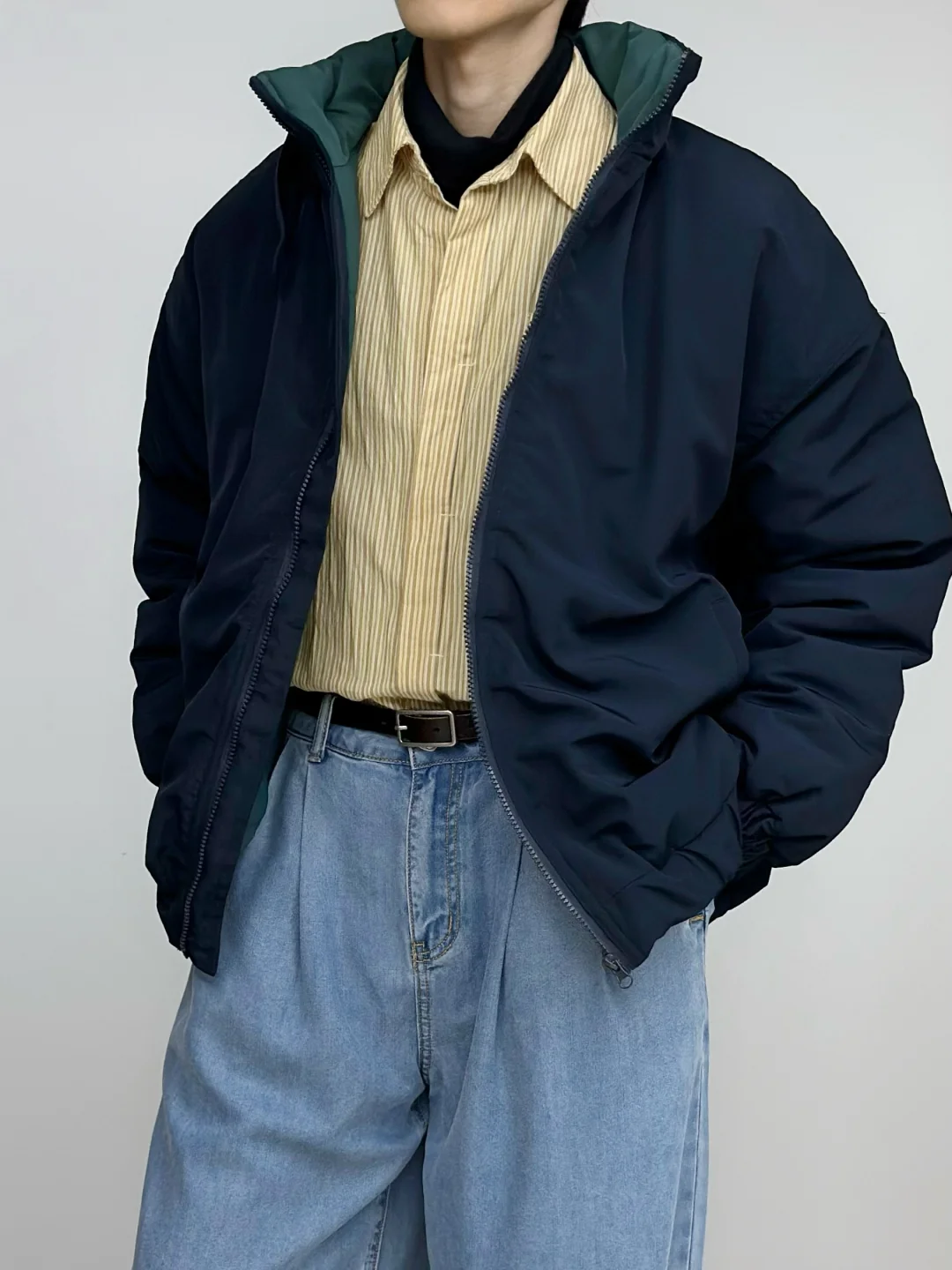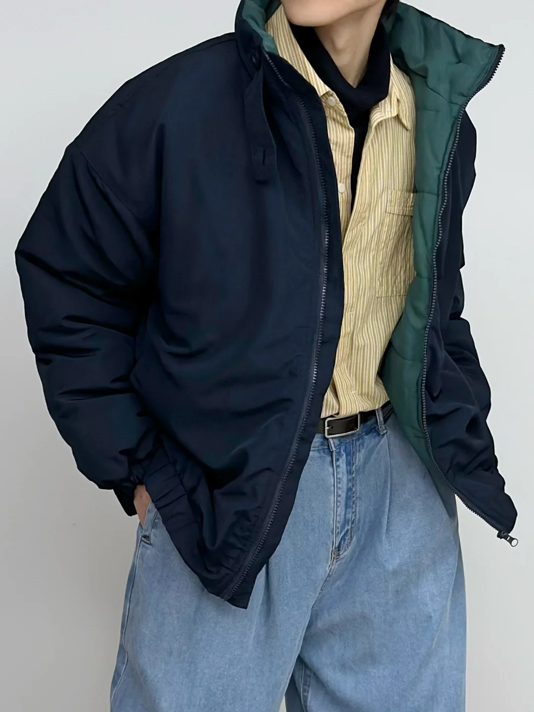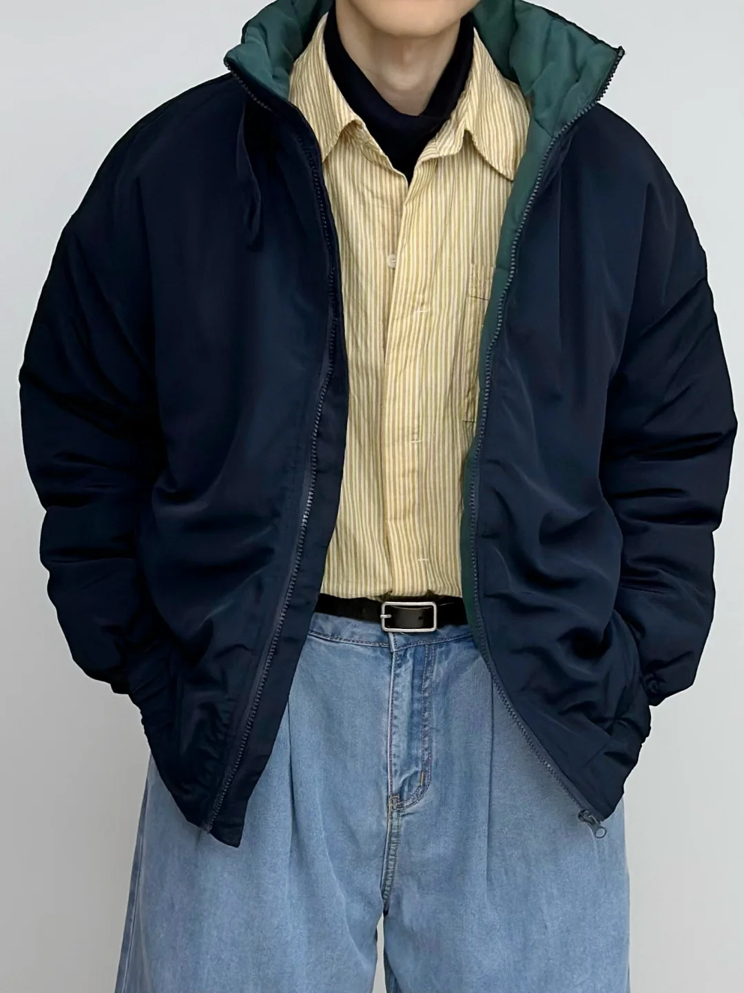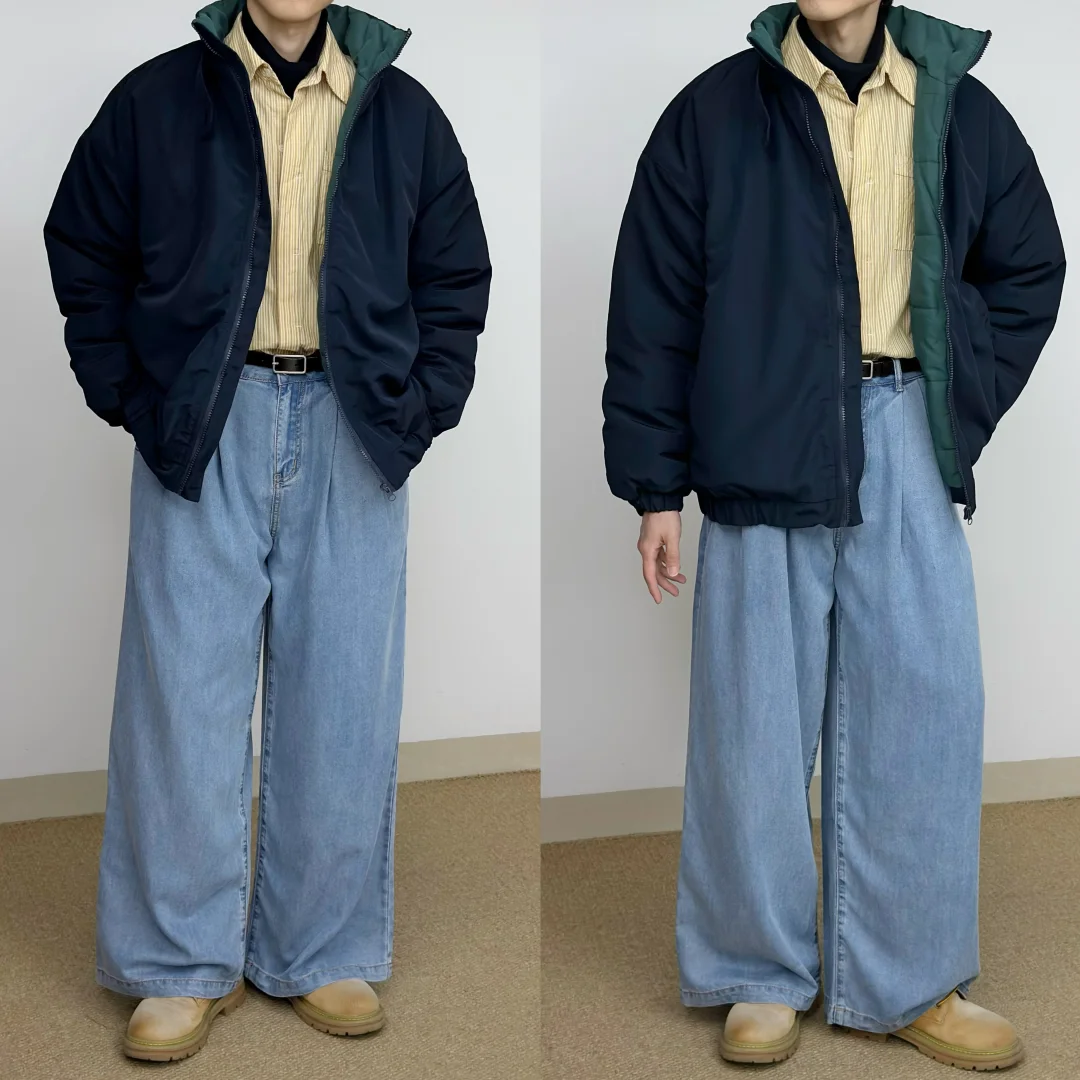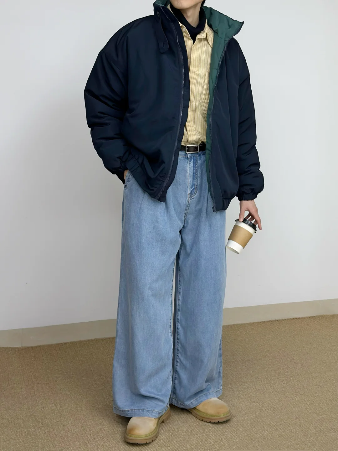 - 蓝色与黄色的组合 算是干净清新又亮眼🌟 廓形大棉服给的安全感 搭配牛仔裤与大黄靴 复古造型感这一块👌 -