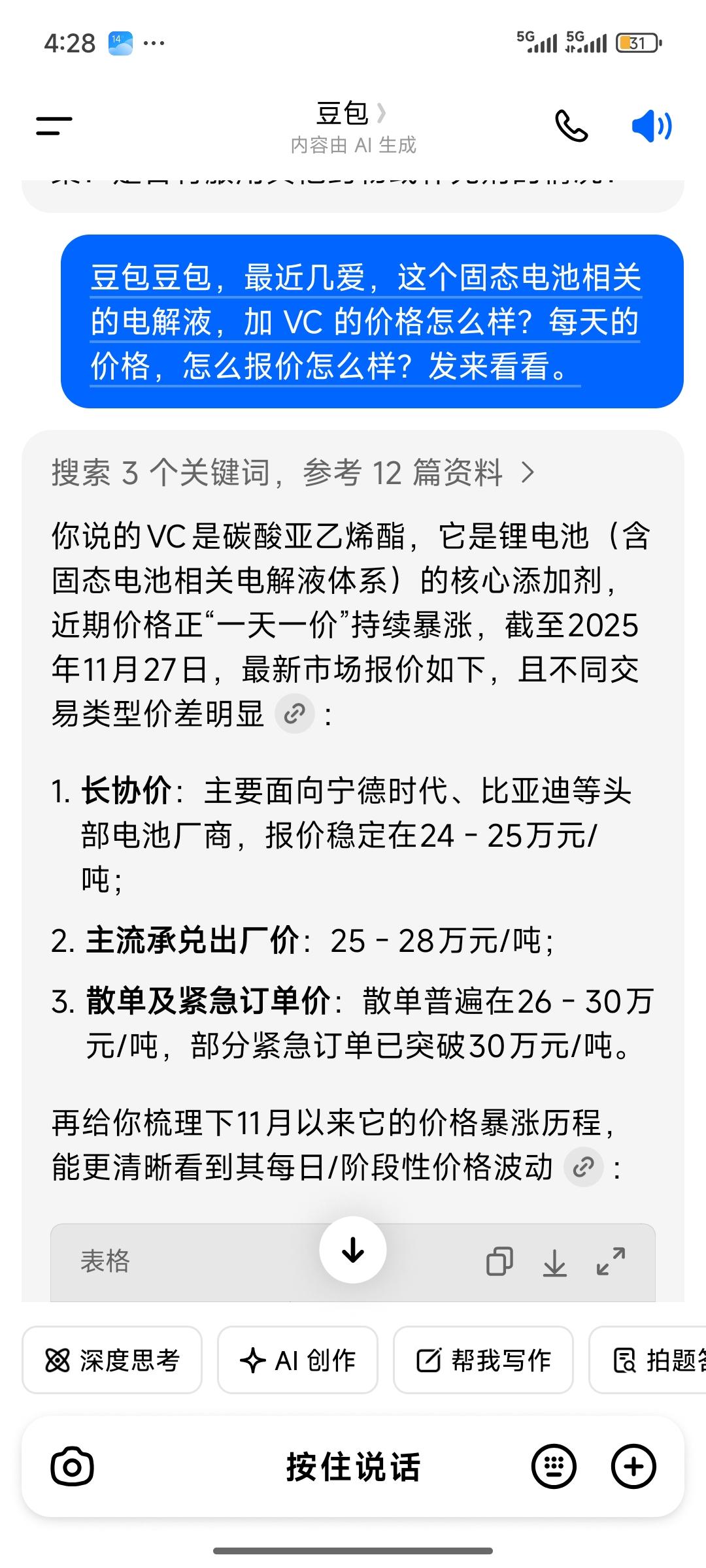 固态电池板块今日终迎大幅反弹。我借助豆包查询了近期固态电池电解液及vc的价格,发现其价格每日都在大幅上扬,涨幅相当可观,从月初的五六万,涨到如今约25万了。 那么,固态电池是否会迎来上涨的第三浪呢?特别是以奥克股份为代表的相关股票。此前经历了第一浪上升、第二浪调整,如今是否会开启第三浪上升,让我们拭目以待。 全固态电池 国产全固态电池 固态锂电池 储能型固态电池 半固态电池 固态电池评测 全固态锂电池