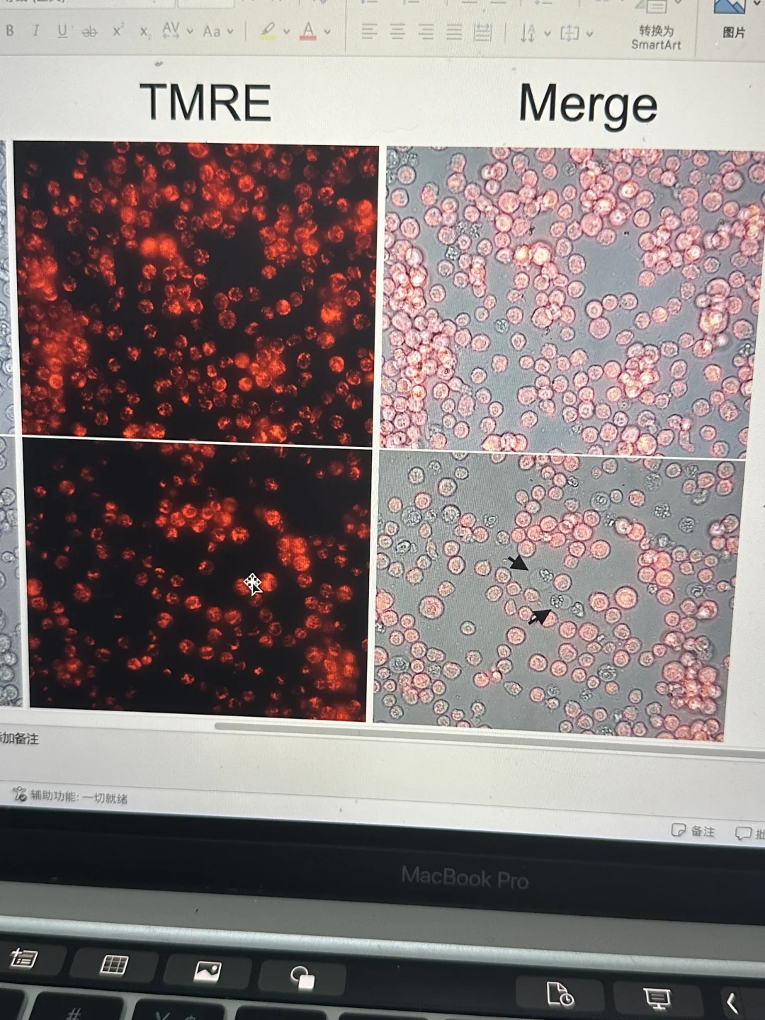 如果用TMRE或者TMRM染色,必须拍和细胞的merge图,这样才能证明膜电位下降,否则只有荧光图无法证明