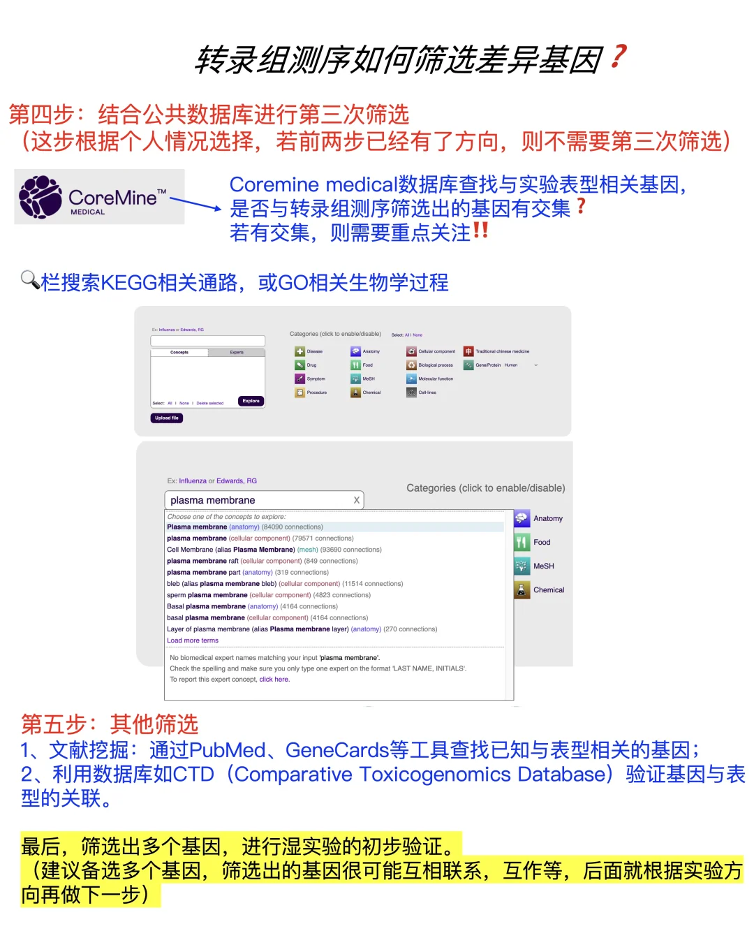结合公共数据库,例如:coremine medical,查找与实验表型或筛选出的通路有关的基因,寻找有交集的基因