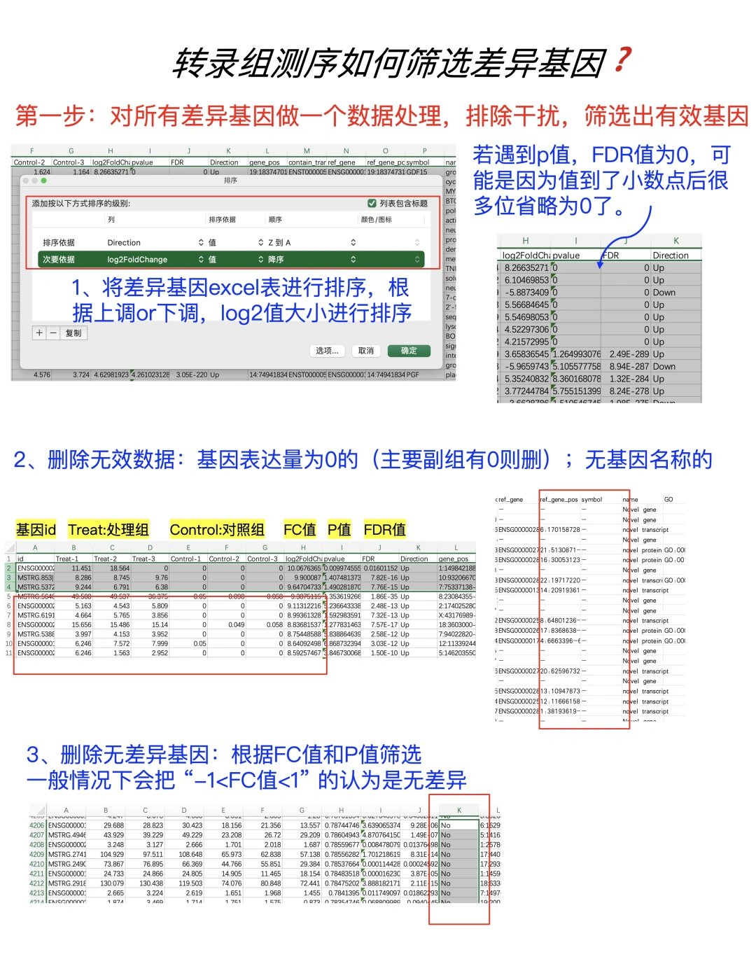 对差异基因数据Excel表进行预处理,筛除“无效基因”