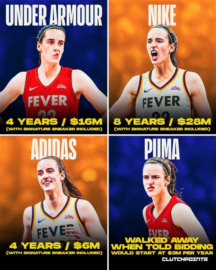 库里“最不满UA的一点”是去年公司试图招募WNBA狂热球星凯特琳-克拉克加入库里品牌失败。当时Nike提供的是8年2800万美元附带签名鞋条款,UA提供的是4年1600万美元附带签名鞋条款,阿迪提供的是4年600万美元附带签名鞋条款,而彪马得知克拉克要求至少300万美元一年后退出了竞价。曝库里右大腿挫伤 火箭战胜爵士