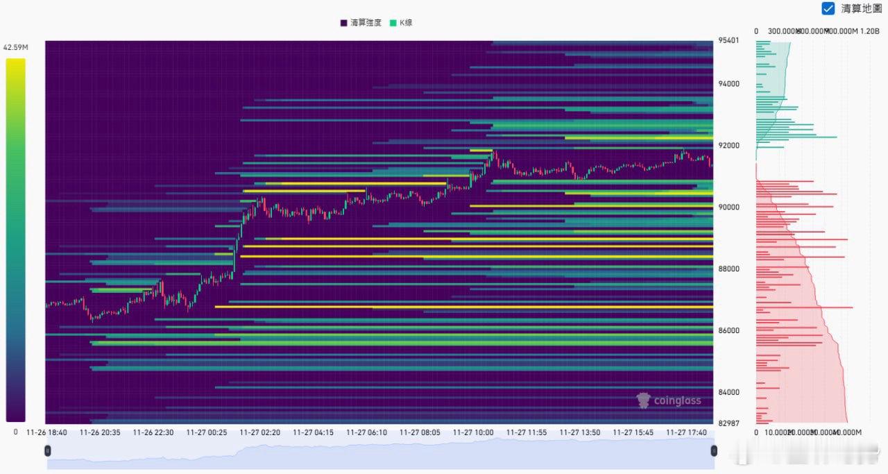 📊BTC今日多空清算點空頭清算點:92276,93263,94578(空頭最後清算區間)多頭清算點:90467,88988,88083,86768-85535(多頭最後清算區間)今日感恩節美股休市,市場流動性降低,散戶影響力相對提升,市場延續震蕩格局,等待交易機會。