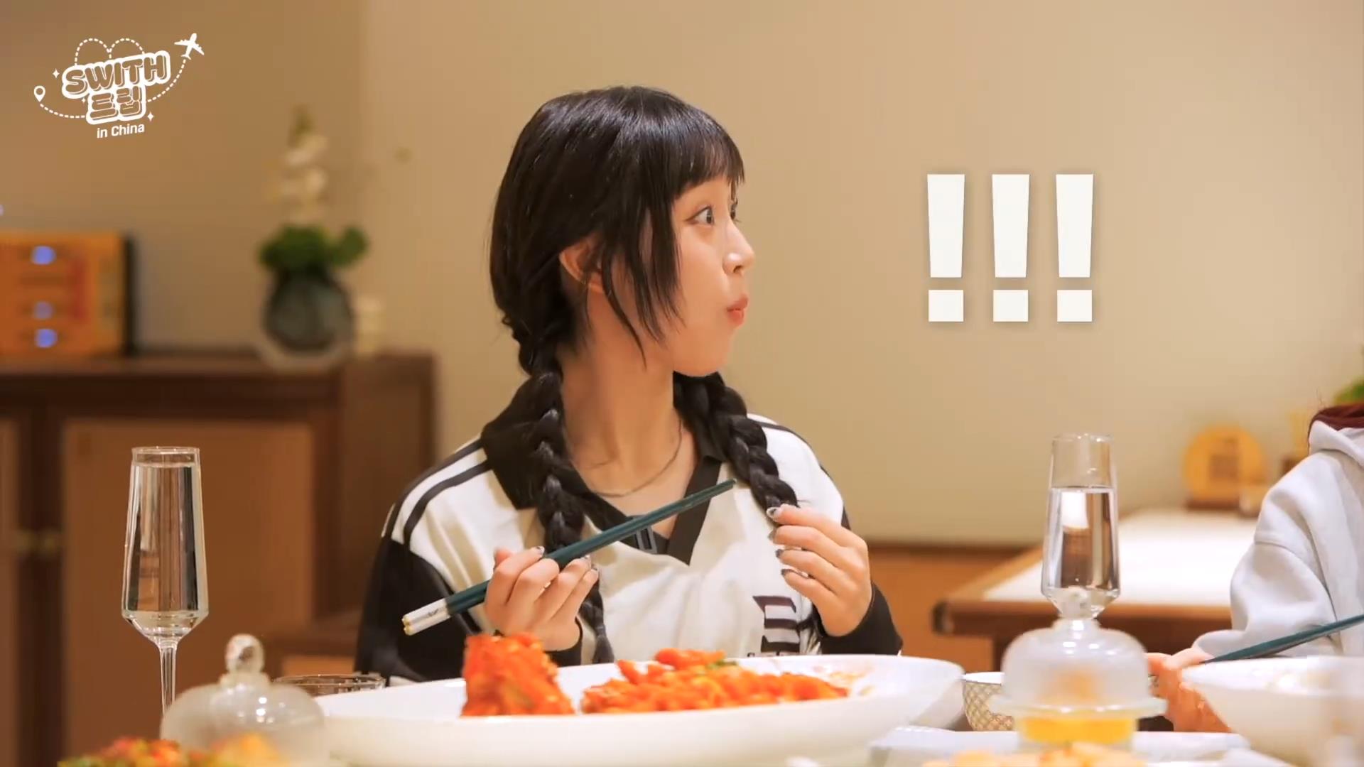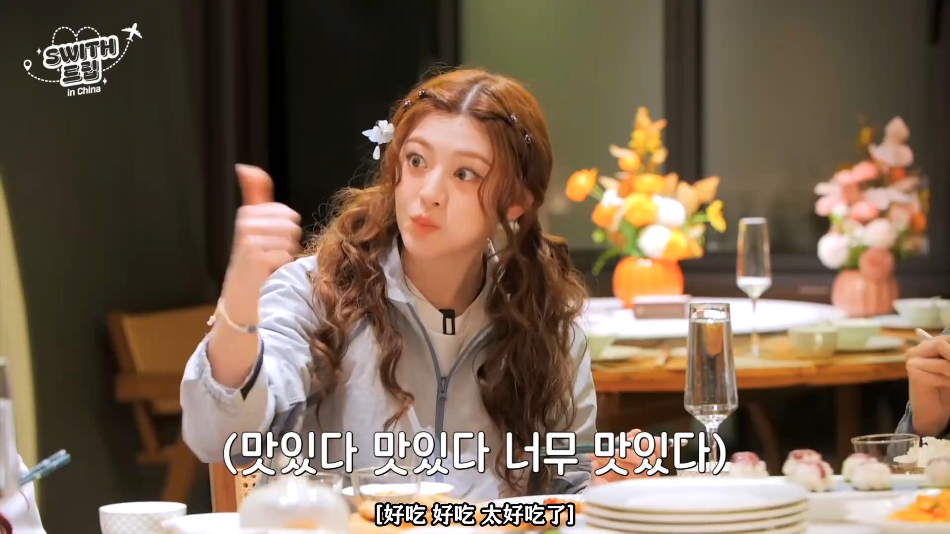 韩国女团在中国录制团综,晚上,几人一起品尝了一桌子中国特色菜。
