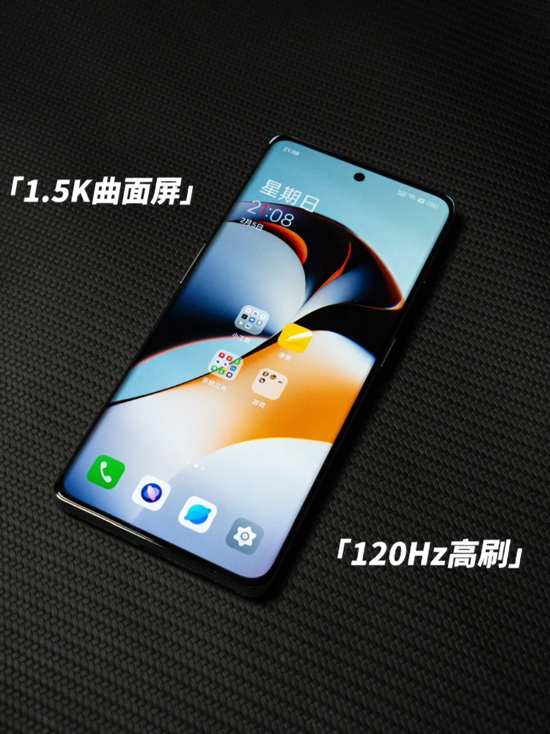 2⃣️屏幕是一块6.74英寸的1.5K曲面屏,支持120Hz自适应高刷和高频PWM调光;