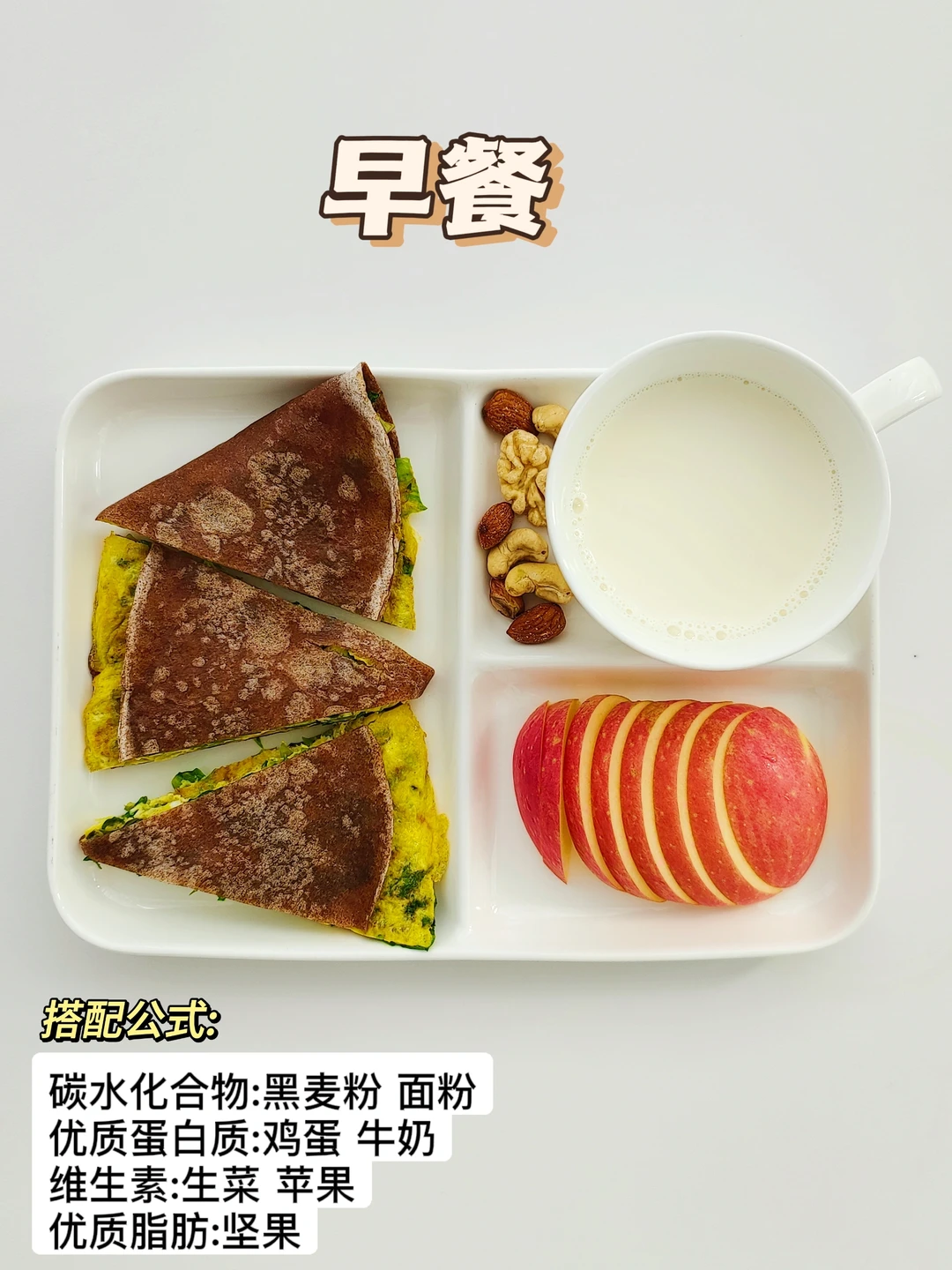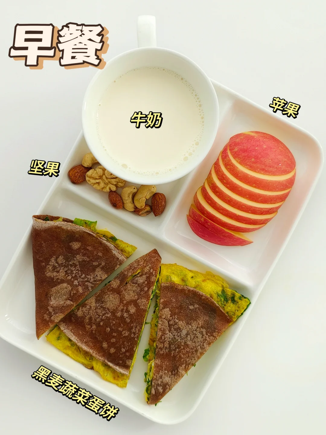 黑麦蔬菜蛋饼➕坚果➕苹果➕牛奶