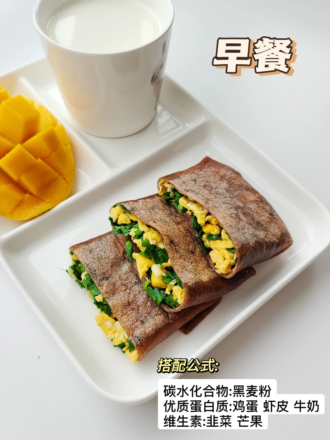 黑麦韭菜盒子➕牛奶➕芒果