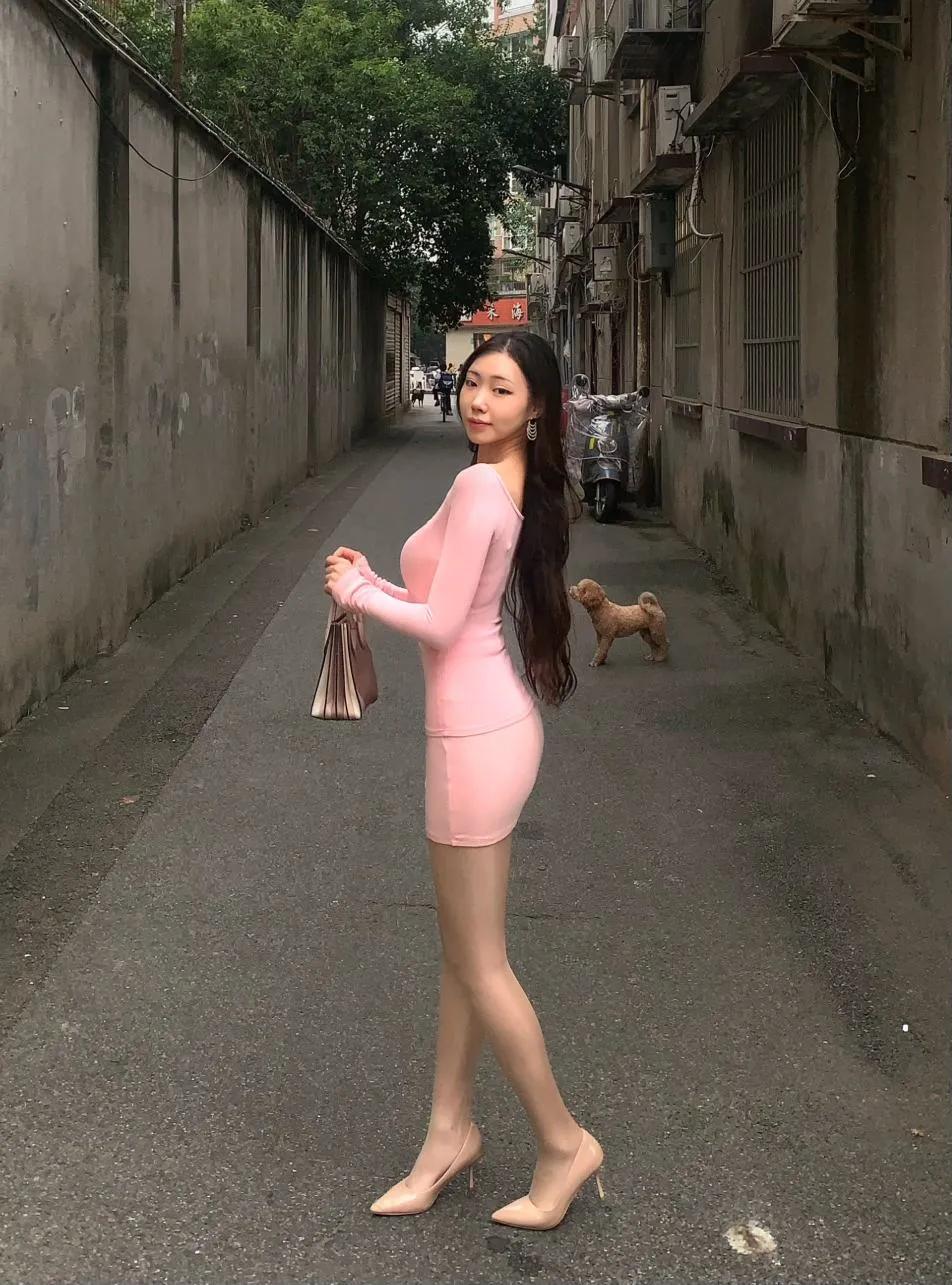 粉裙甜妹漫步老街 高跟鞋搭配肉丝袜 复古与现代的碰撞[比心]