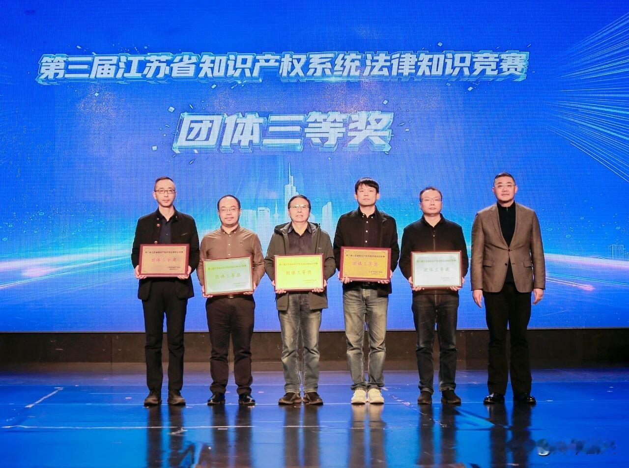 11月25日,第三届江苏省知识产权系统法律知识竞赛在南京圆满落幕,徐州代表队(睢宁局解晓丹、邳州局李飞、铜山局杨润昀、市知识产权保护中心王宇),凭借扎实法律功底和出色现场发挥荣获团体三等奖!