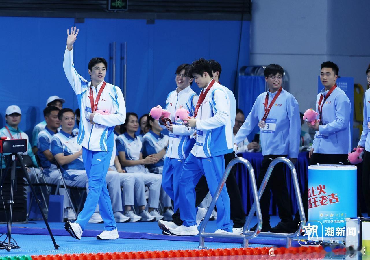 宁波籍 第十五届全运会浙江游泳选手 汪顺、余依婷 现身2025年宁波市青少年游泳