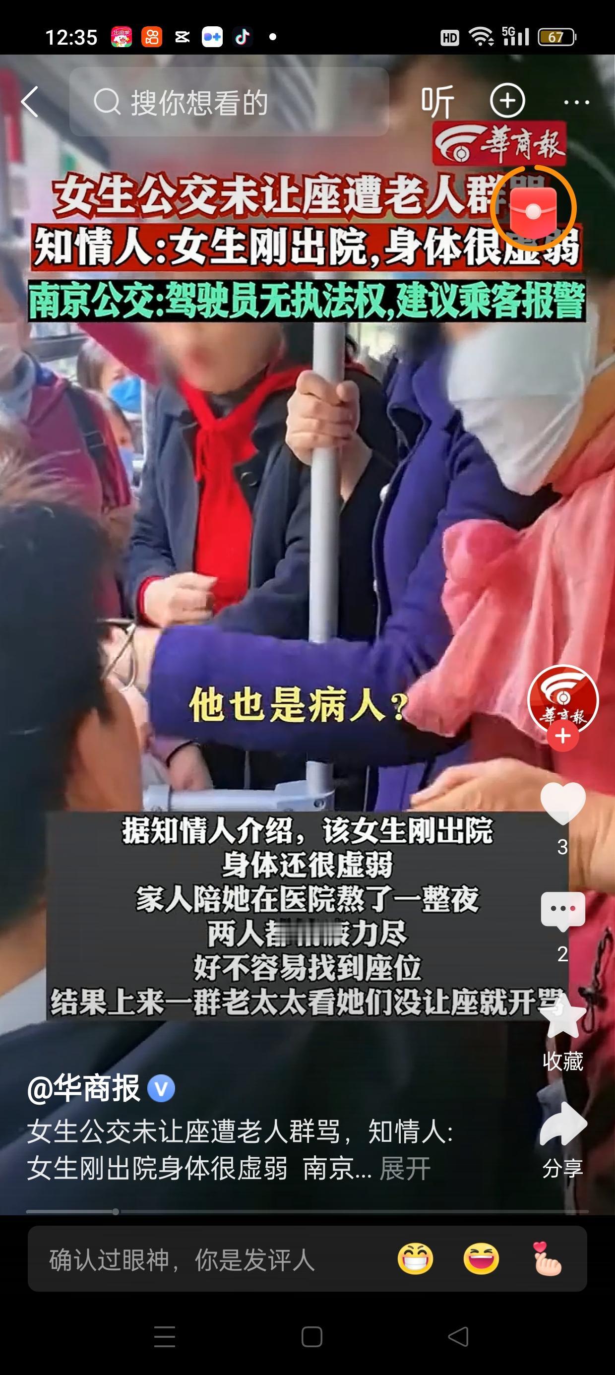 【刚出院女子未让座遭老太太围骂,公交集团回应引发热议】 近日,一起发生在某城市公交车上的事件引发了广泛关注和热烈讨论。一位刚刚出院的女子在公交车上未让座,竟然遭到一群老太太的围堵和谩骂。这一事件不仅让人感受到公共场所的复杂人际关系,也再次引发了关于文明礼让、尊重弱势群体的社会话题。 事情发生在一个平凡的早晨,公交车上人流密集。刚出院的女子因为身体尚未完全康复,显得略微虚弱,但在车上没有主动让座。没想到,几位老太太看到后,情绪激动,开始指责女子不懂礼貌,甚至大声斥责,场面一度失控。乘客们纷纷围观,有人试图调解,但局势依然紧张。这一幕被旁边的乘客用手机拍下并上传到网络,迅速引发热议。 网络上对于事件的讨论呈现两极。一方面,有人谴责老太太的过激行为,认为公共场合应以理性和包容为基础,尊重每一位乘客的特殊情况。另一方面,也有人呼吁女子应主动展现善意,理解老年人的善意提醒。更有人反思,公共交通应成为文明的窗口,每个人都应遵守基本的礼仪。 事件曝光后,公交集团迅速做出回应。公司表示: “我们高度重视此次事件,将深入调查事实真相。公交车是公共空间,乘客应相互理解、尊重。我们呼吁广大乘客文明乘车,关爱身边的弱势群体。对于此次事件中出现的不当行为,我们将依法依规处理,确保公共交通环境的和谐与安全。”同时,公交集团也加强了宣传教育,呼吁乘客遵守文明礼仪,营造温馨、和谐的乘车氛围。 这起事件折射出当今社会在公共场合的种种矛盾,也提醒我们:文明礼让不仅仅是个体的素养,更是社会文明的体现。面对特殊群体,我们应多一份理解与包容。老人、孕妇、残障人士等群体更需要我们的关心和帮助,而不是指责和谩骂。 此次事件也促使相关部门和社会各界反思:如何在公共交通中更好地推动文明礼仪?如何通过宣传教育增强公众的文明意识?这些问题都亟需我们共同努力。 文明,是社会的底色,也是每个人的责任。让我们从点滴做起,用理解和尊重共同营造一个温暖、和谐的公共空间。每一次礼让,都是文明的闪光点;每一次包容,都是社会的进步。希望类似的事件不再重演,让文明成为我们共同的底线与追求。