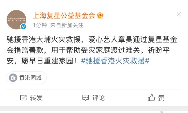 【Twi】[ZB1 成员章昊向中国香港火灾灾区捐款传递慰问与支持]中国 博行基金会 28日通过社交平台发布公告称:“为支援中国香港大埔地区火灾的救援工作,章昊通过博行基金会捐赠了救助款项。”基金会补充表示:“这笔捐款将用于帮助受灾家庭度过难关。我们祈愿所有人平安,也希望当地生活能够尽快恢复正常。”章昊