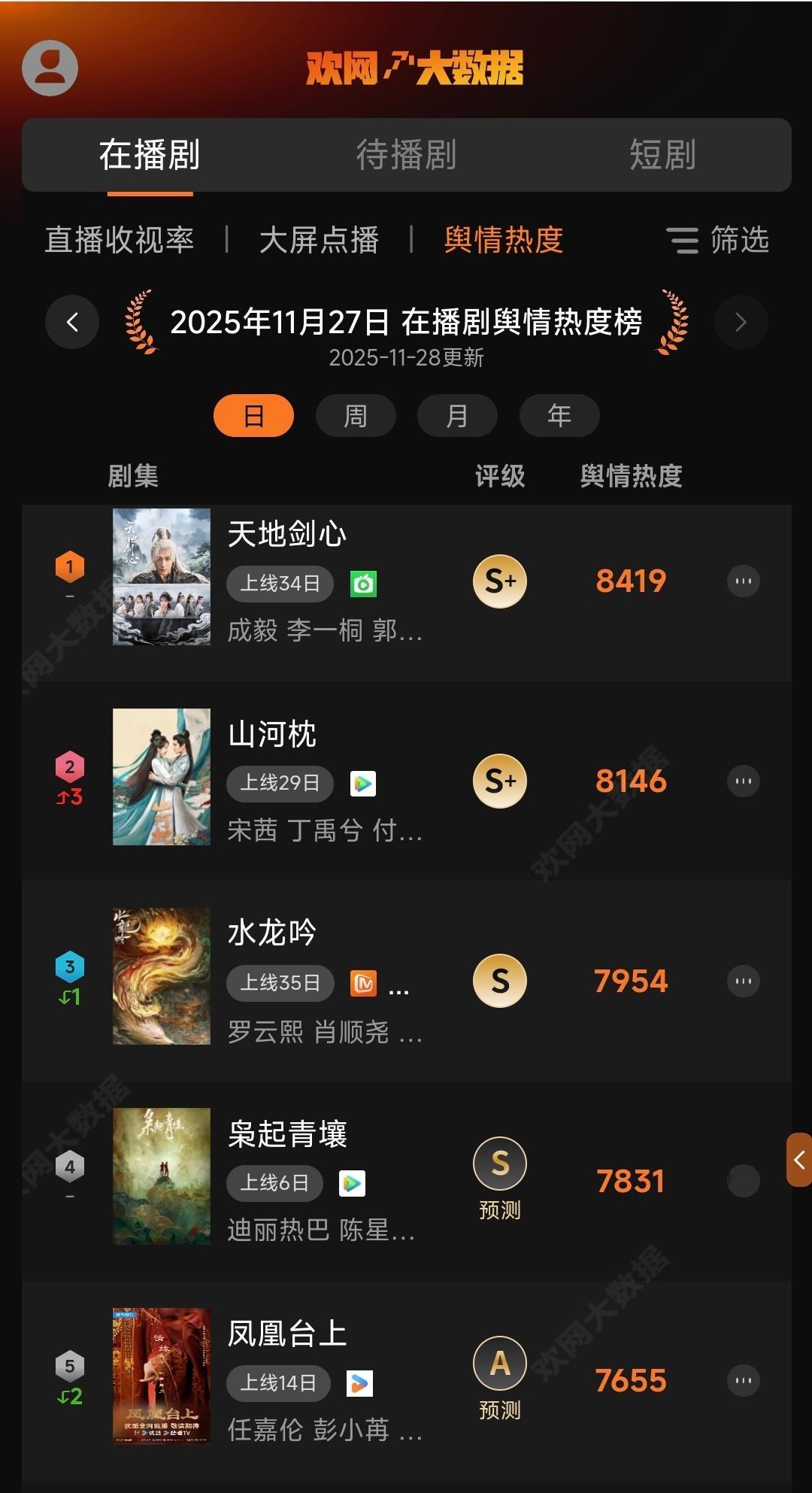 11月28日欢网大数据在播剧舆情热度榜山河枕 再次回到第二!宋茜剧刚杀青就进新组,还有开机仪式,接下来的时尚活动也会参加,一番女主剧山河枕在浙江卫视cvb收视也在年榜前列,各种小儿科式的黑完全影响不了宋茜,它们破防打闹的样子真的好好笑宋茜楚瑜宋茜山河枕
