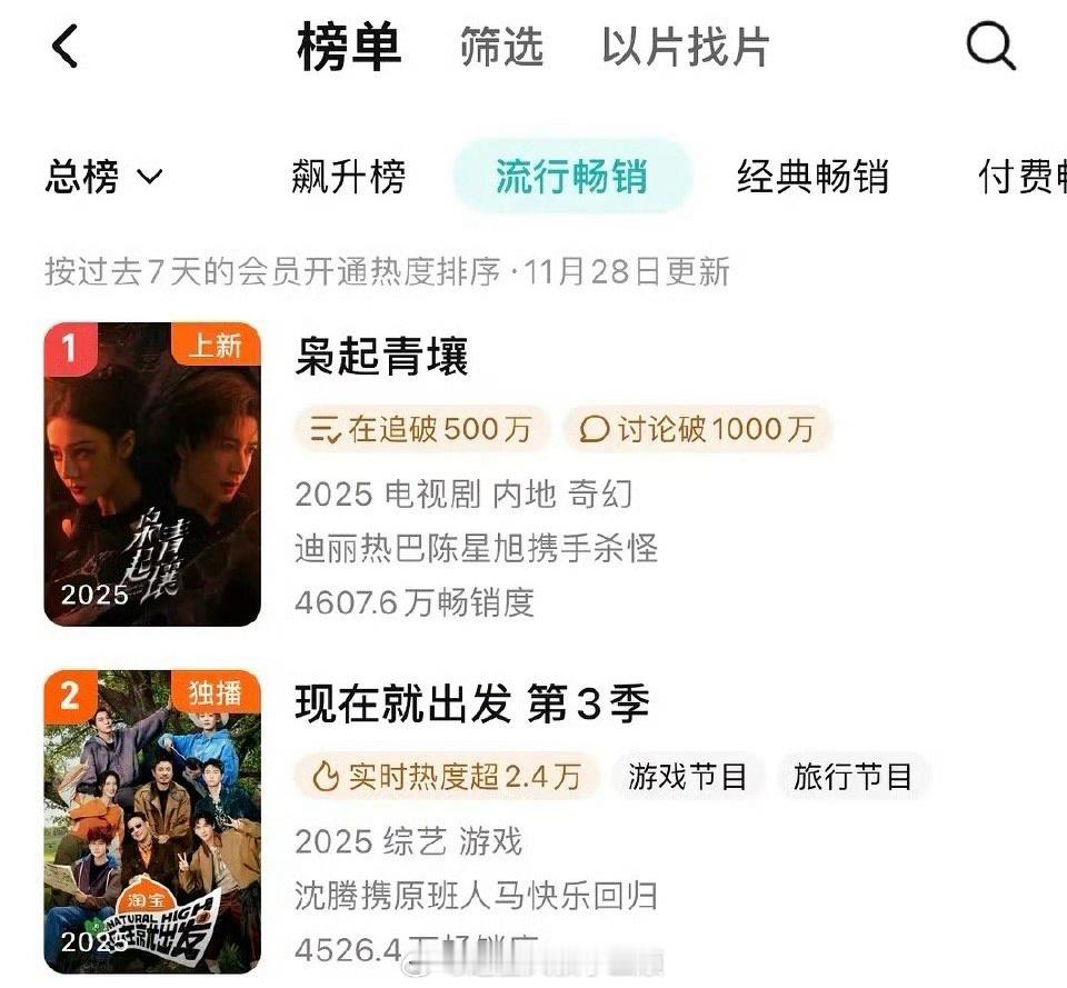 迪丽热巴《枭起青壤》上升至🐧流行畅销榜第一了!👏🏻
