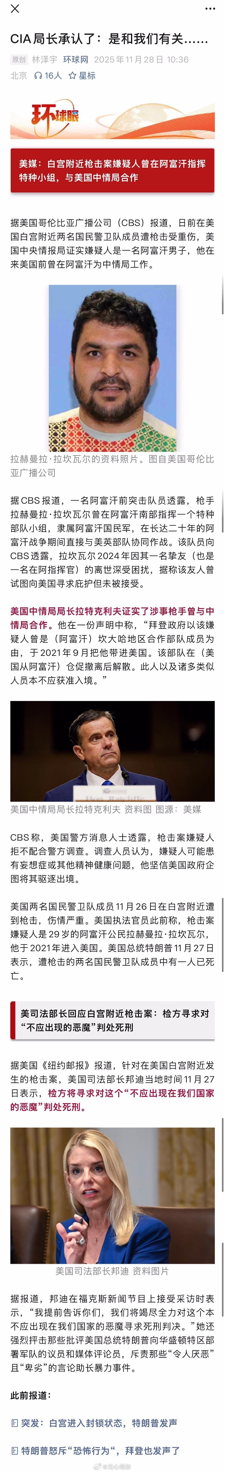 美媒:白宫附近枪击案嫌疑人曾在阿富汗指挥特种小组,与美国中情局合作海外新鲜事