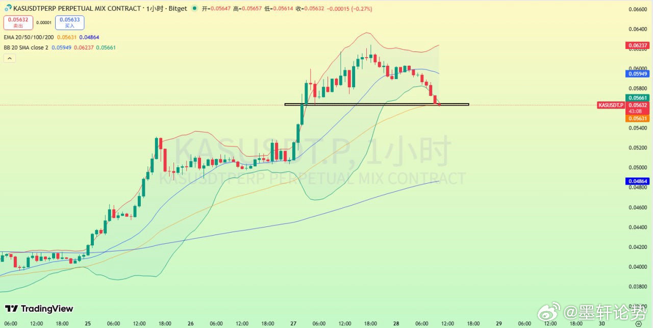 KAS 1小時五連陰,小級別支撐破位跡象,市價輕倉📉