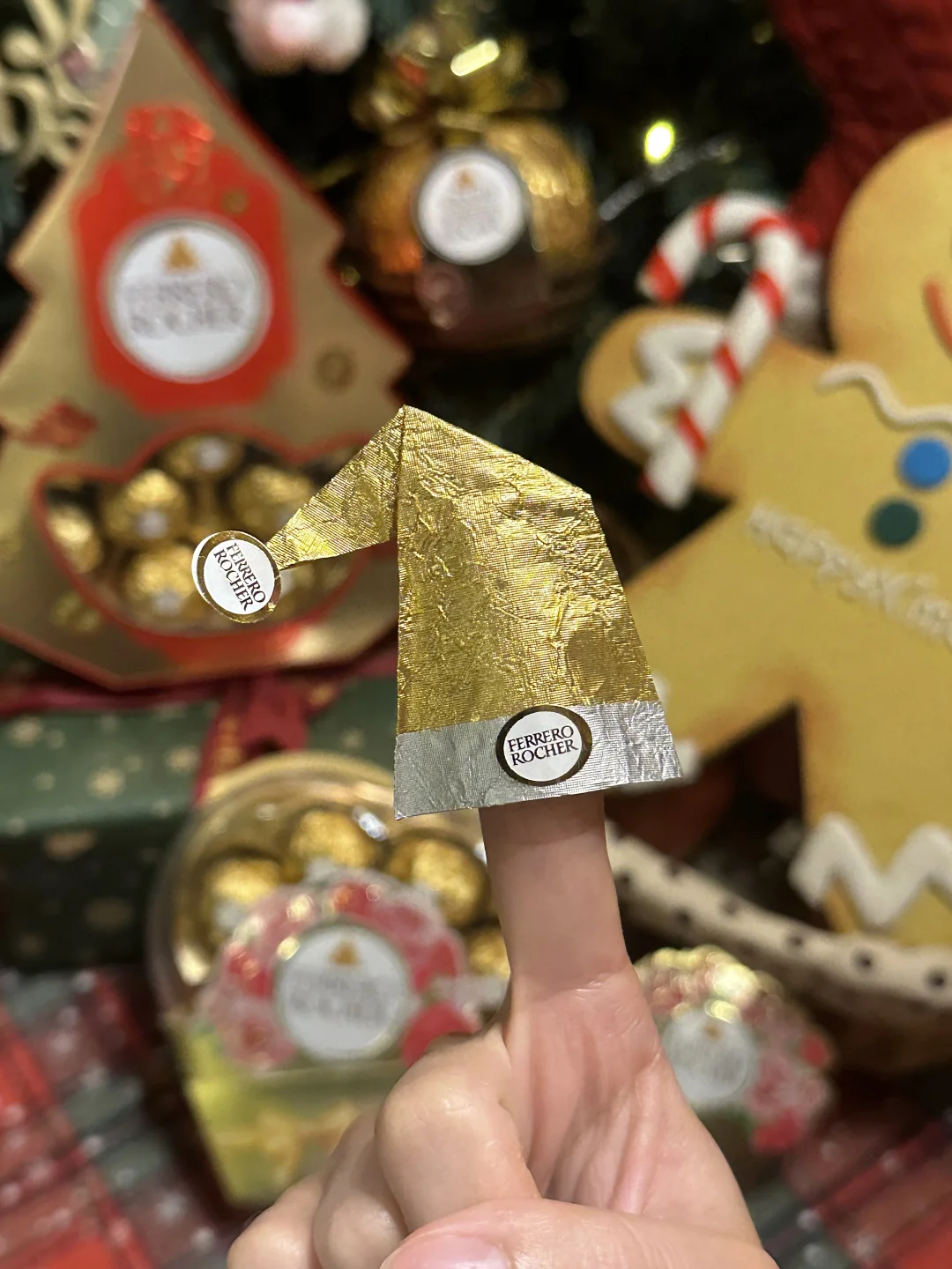 🎄敲重点!吃完的金色包装纸也不要扔,可以和朋友一起折一些圣诞帽、圣诞树之类的圣诞氛围折纸,好有意思!有了费列罗的加入,让圣诞相聚也变得更有含金量!折完的成品还可以去Rocher 参与活动,也有机会可以赢豪华浪漫晚餐哦👩🏻❤️💋👩🏻