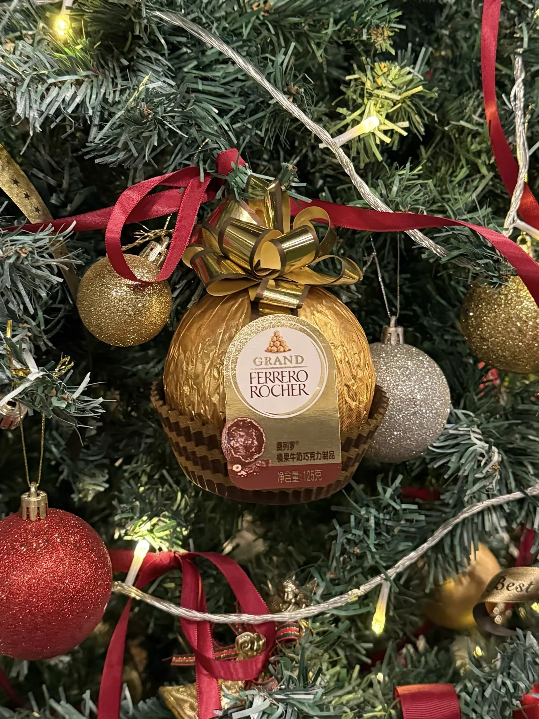 里面的小金球是费列罗的经典款,整颗榛果被香浓的可可酱包裹,丰富醇厚的口感就像圣诞节一样,在冬天里给我们温暖扎实的满足感幸福感~