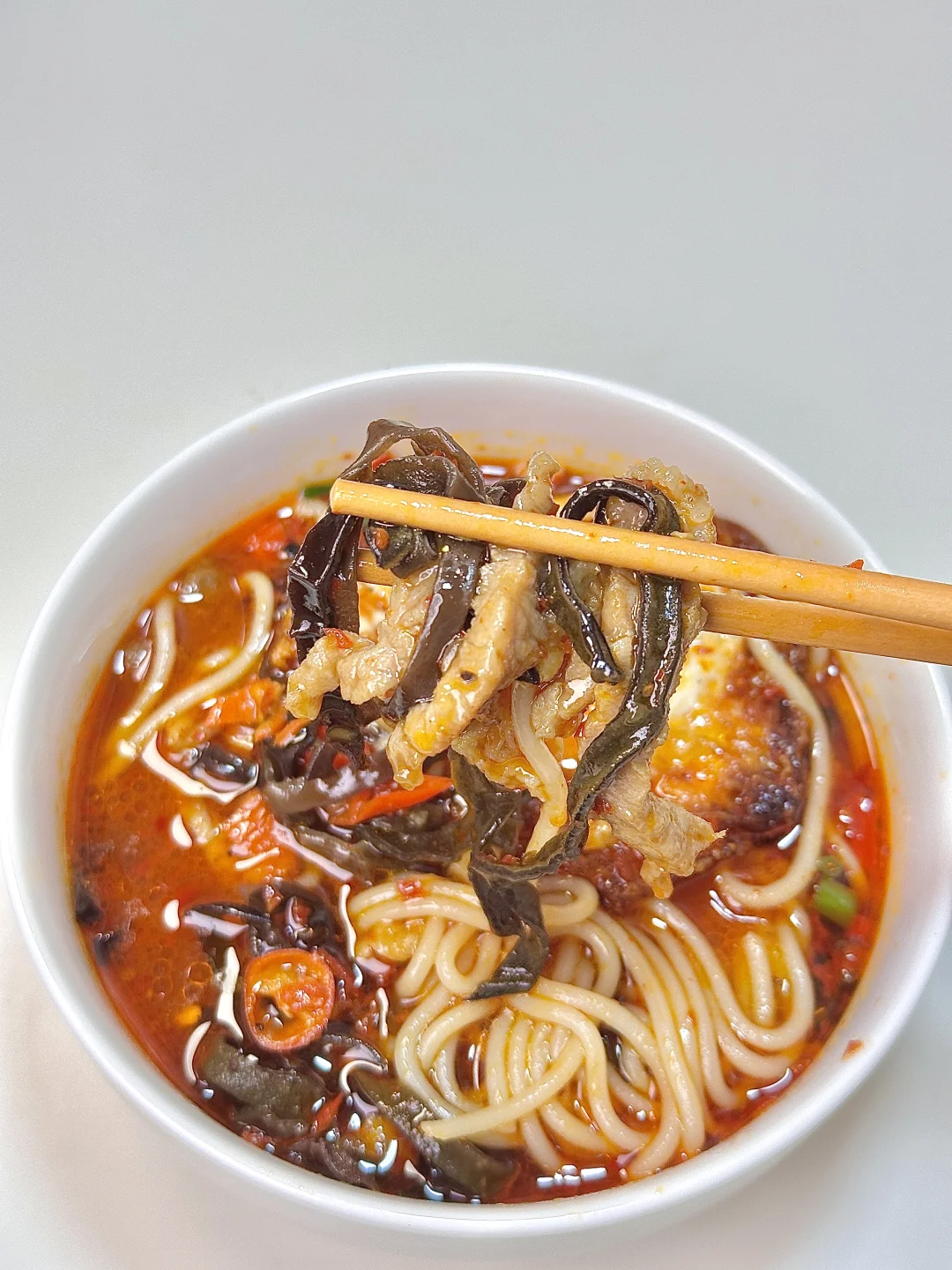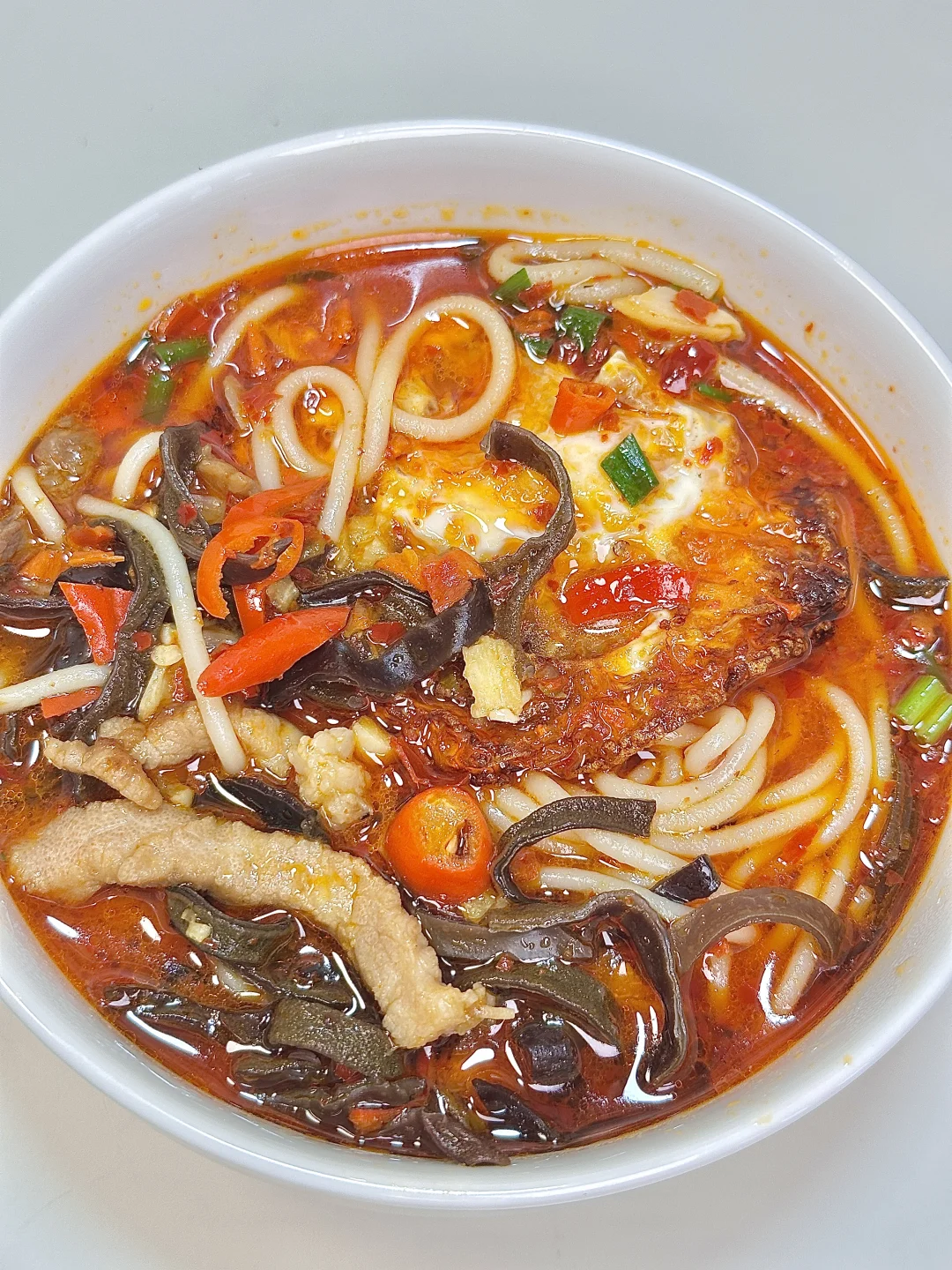 木耳肉丝粉 香辣鲜美😋脆脆的木耳丝搭配吸满汤汁的荷包蛋 好吃😋 有跟我一样喜欢蛋白煎到微焦的嘛[大笑R]的三餐四季