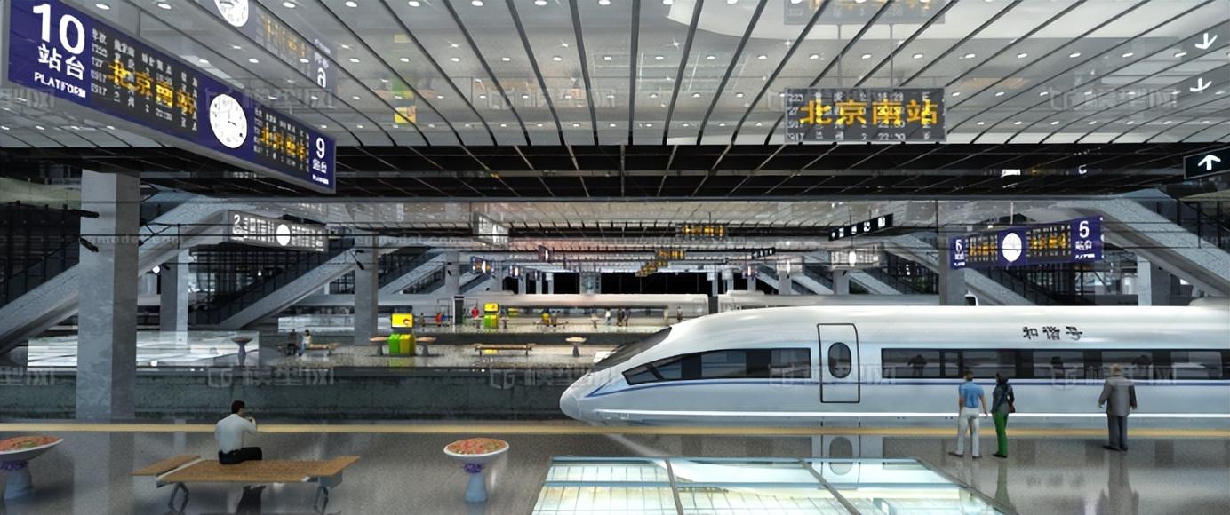 应该先在大过道剪好票,通过新型设计的传送带和升降梯,直接送至待发高铁车门边!