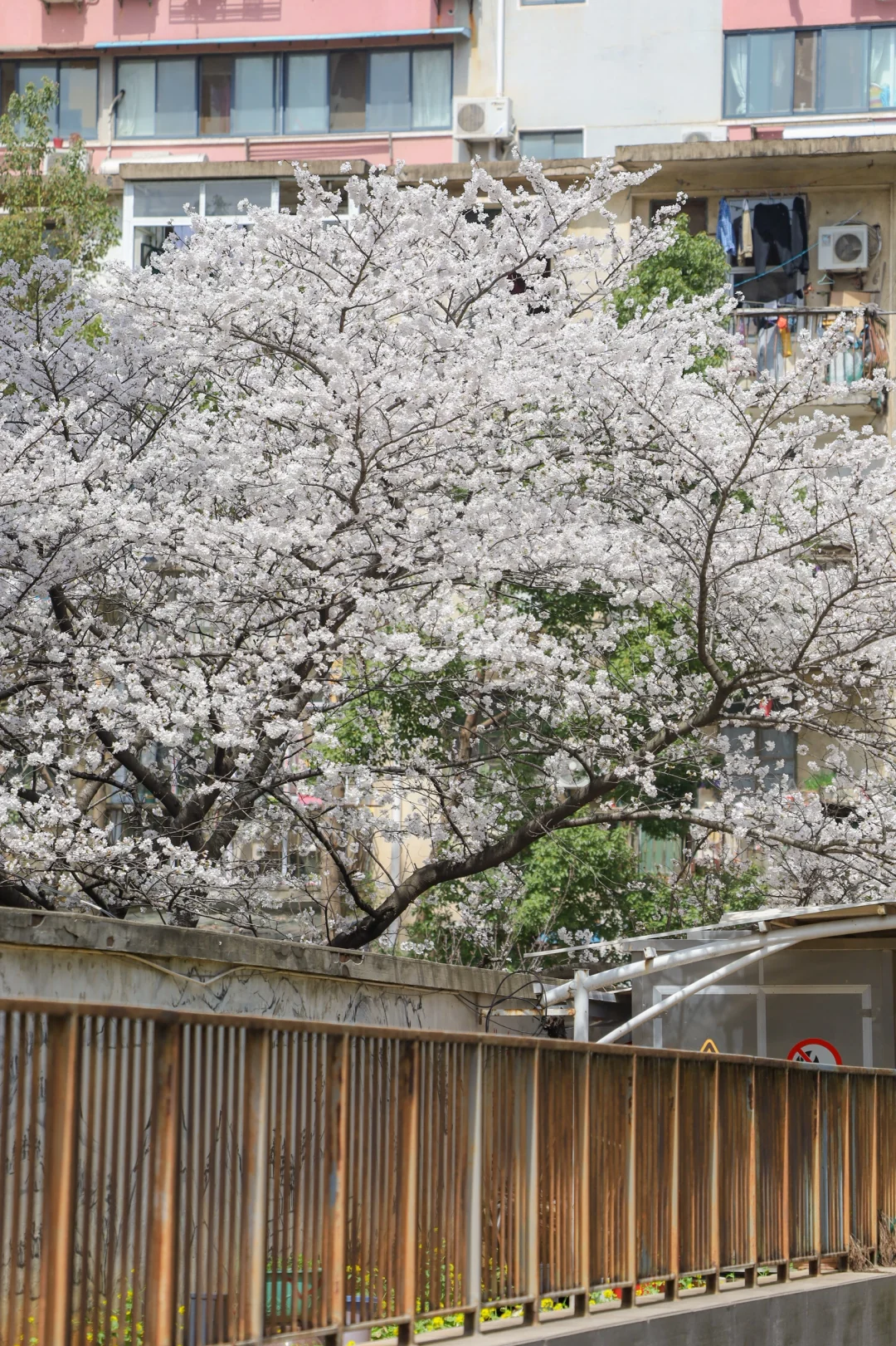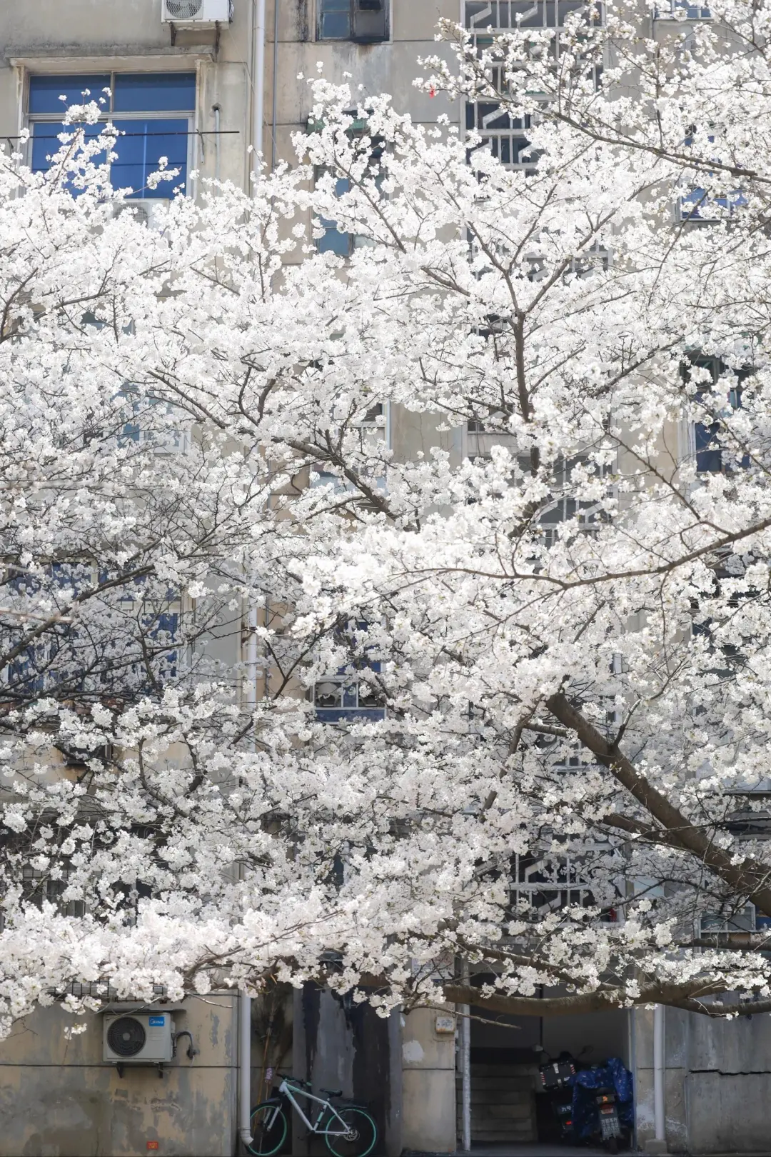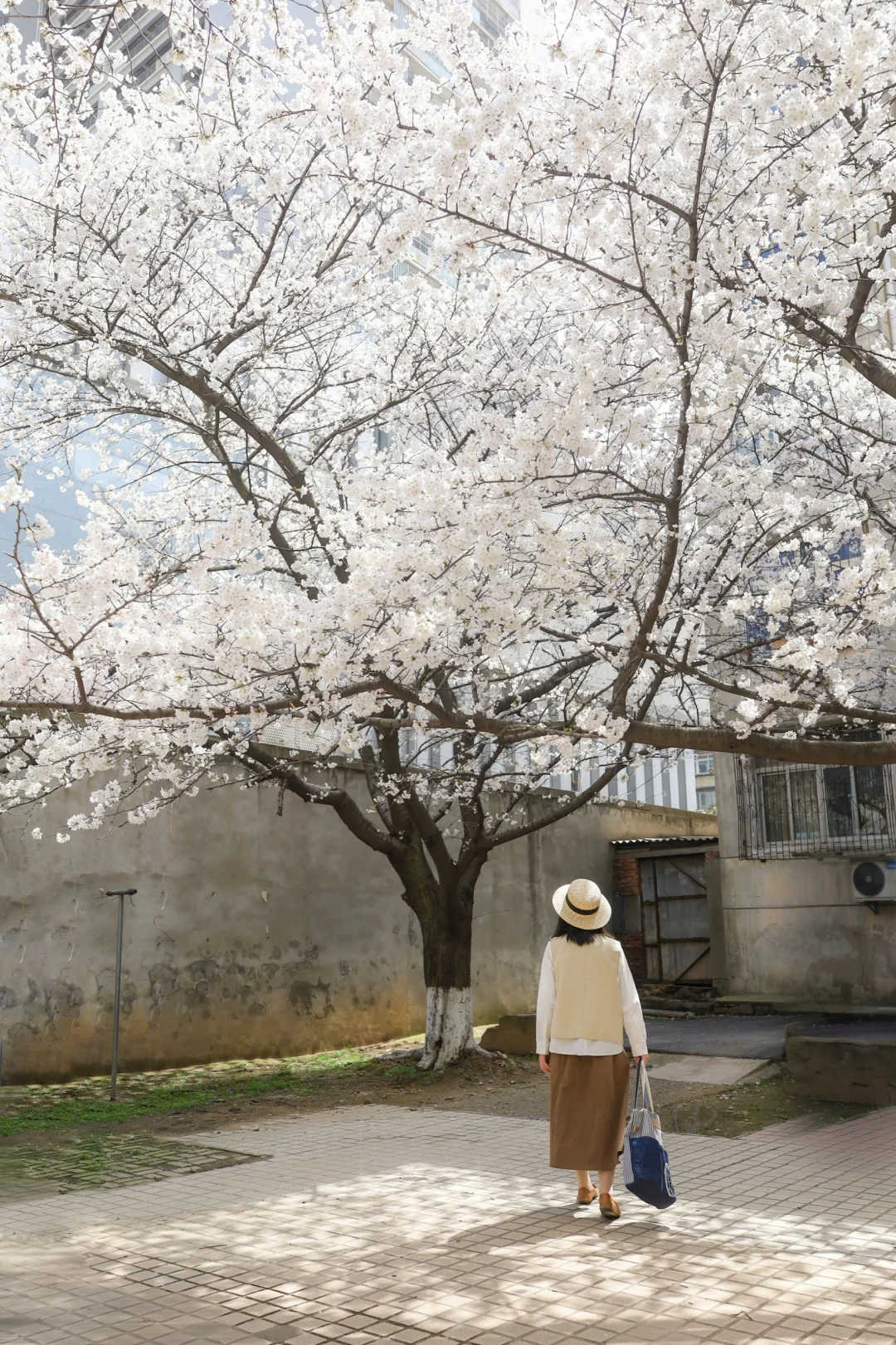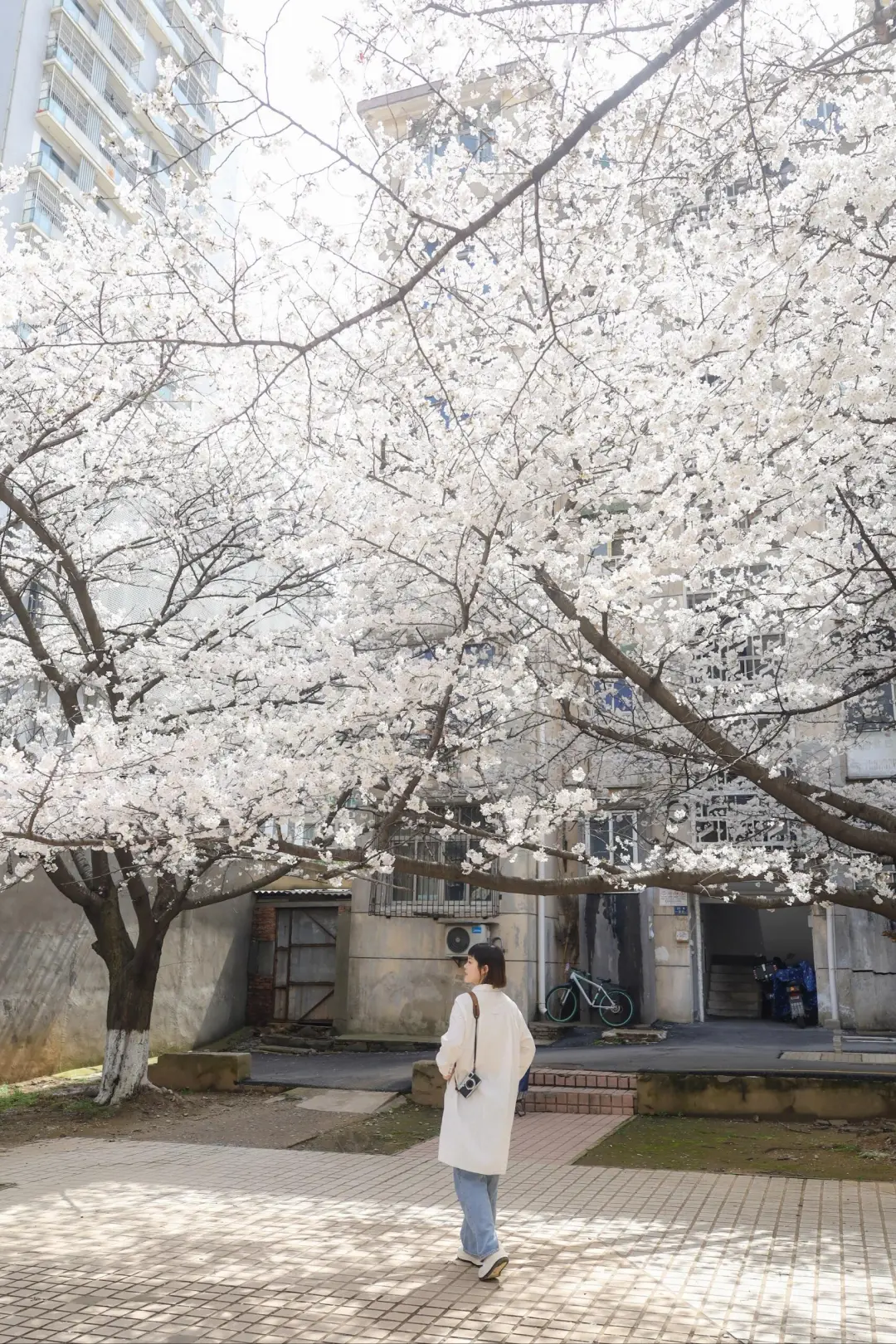 还有一个月武汉樱花🌸就要盛开啦 分享一个人少景美的赏樱地 鲁磨路老小区的樱花树好出片 有五六颗高大的樱花树很日系 📍武仪阳光社区(花期3月中旬)
