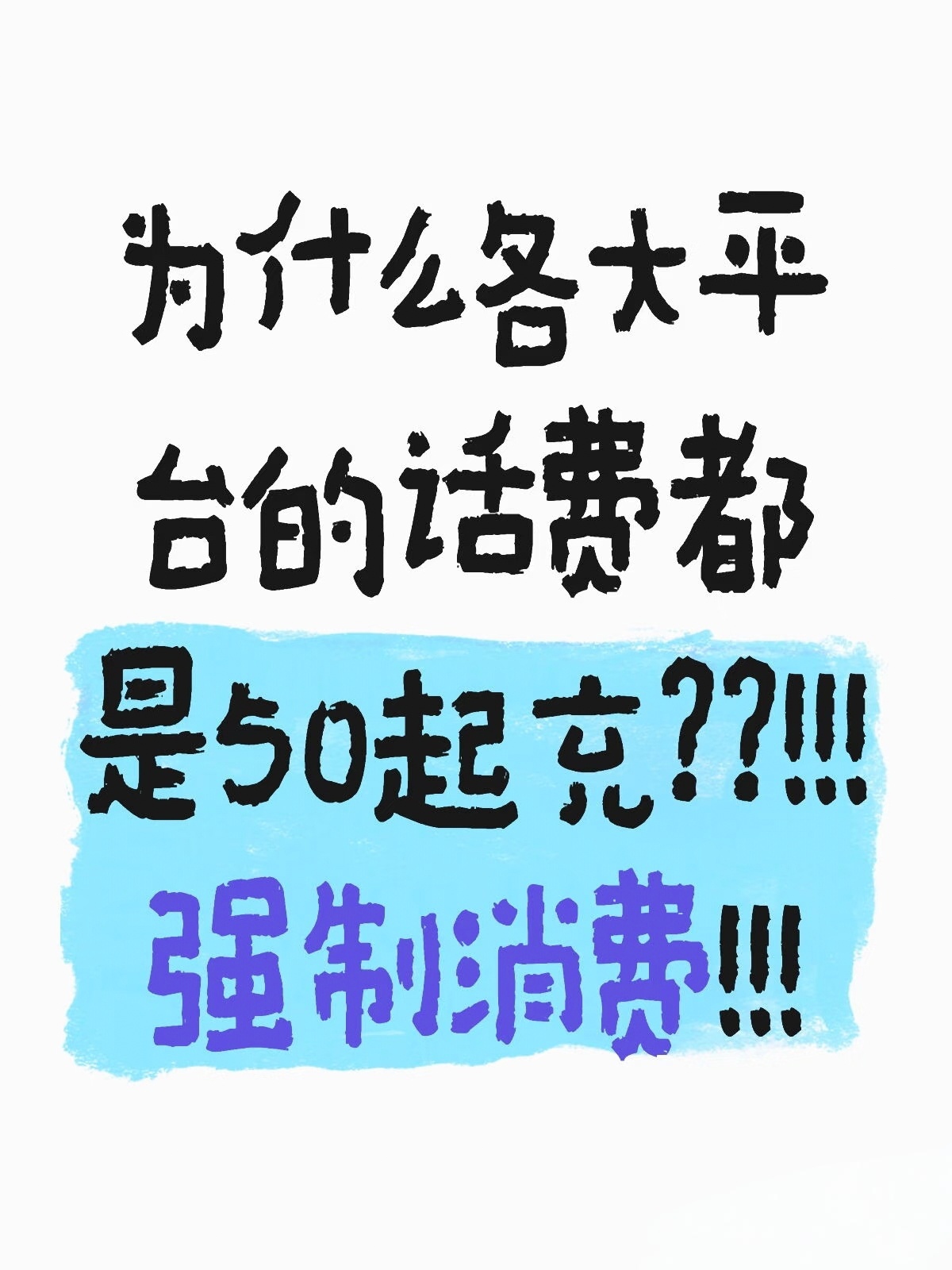 话费最低50元起充不知道从什么时候开始,话费充值已经50起了,以前好歹还有10/20/30的选项,现在直接没了,很多人没发现,还有人是发现了也没当回事…