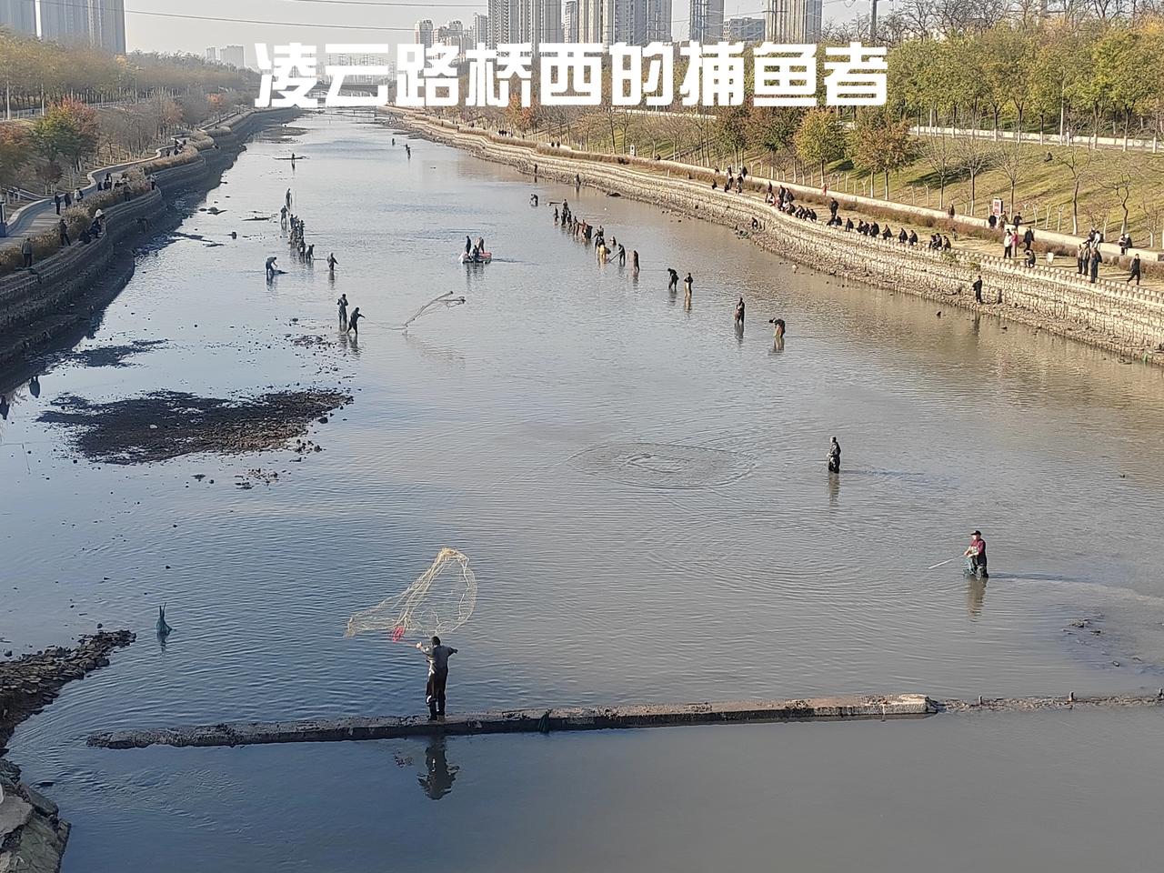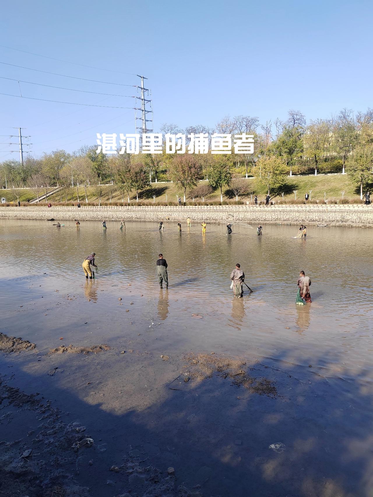 湛河捞鱼! 湛河这水落的可真的够快的,上个星期那水流还叫一个欢畅,今天下午从凌云路湛河桥上过,桥西河道里,有着不少人,都在拿着渔网捕鱼呢,场面看着倒是挺壮观的。 湛河主河道应该是比较深的,主河道两侧一字排开的要有四五十个撒网捕鱼者,看着渔网在河面上的此起彼伏,倒是挺好看的。一位上年纪的老者,或许是年龄大了的原因,渔网撒的倒是不错,但因为撒出去的距离较近,到不了主河道的中心,一网网捞上来,全是空的,连一条小鲫鱼也没有。而有些捕鱼者,却有着不小的收获,其中一位中年男性,一网撒下去,捞上来两条二三斤重的鲤鱼;还有一位的鱼兜里,看那沉甸甸的样子,小鲫鱼和大鲤鱼的,应该有三四十斤重的样子。 站在我旁边的一位上年纪的男士说,从这里捞出来的鱼,能吃吗,好多污水都排到这里了。我也有这样的疑问。 这是我来平六年多的时间,第一次看到湛河水位下降的这么低,稻香路桥的东侧,河底几乎全都露了出来。若趁此时机,能赶快清理一下湛河里的淤泥和垃圾,让湛河变得更加清澈和干净一些就好了。