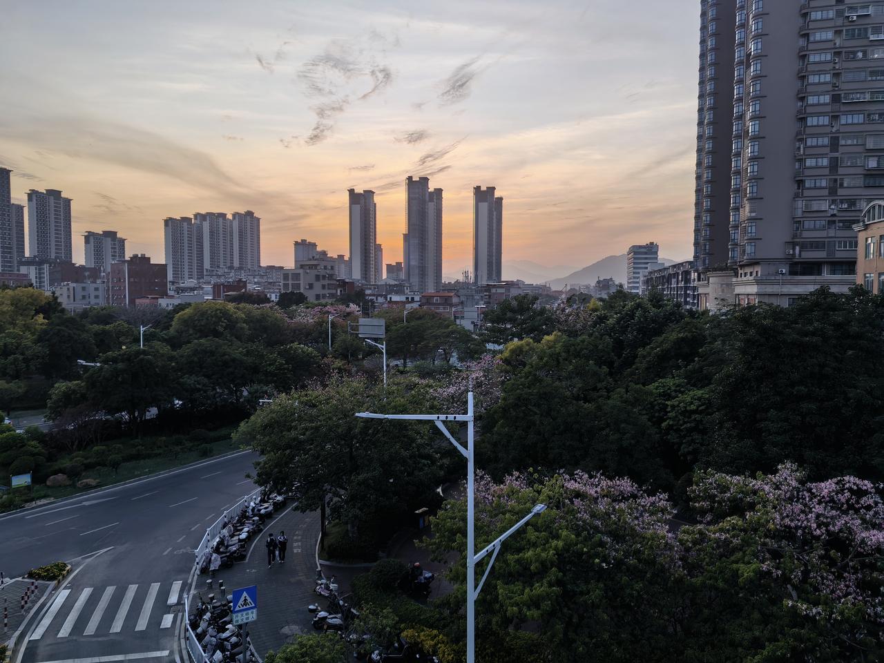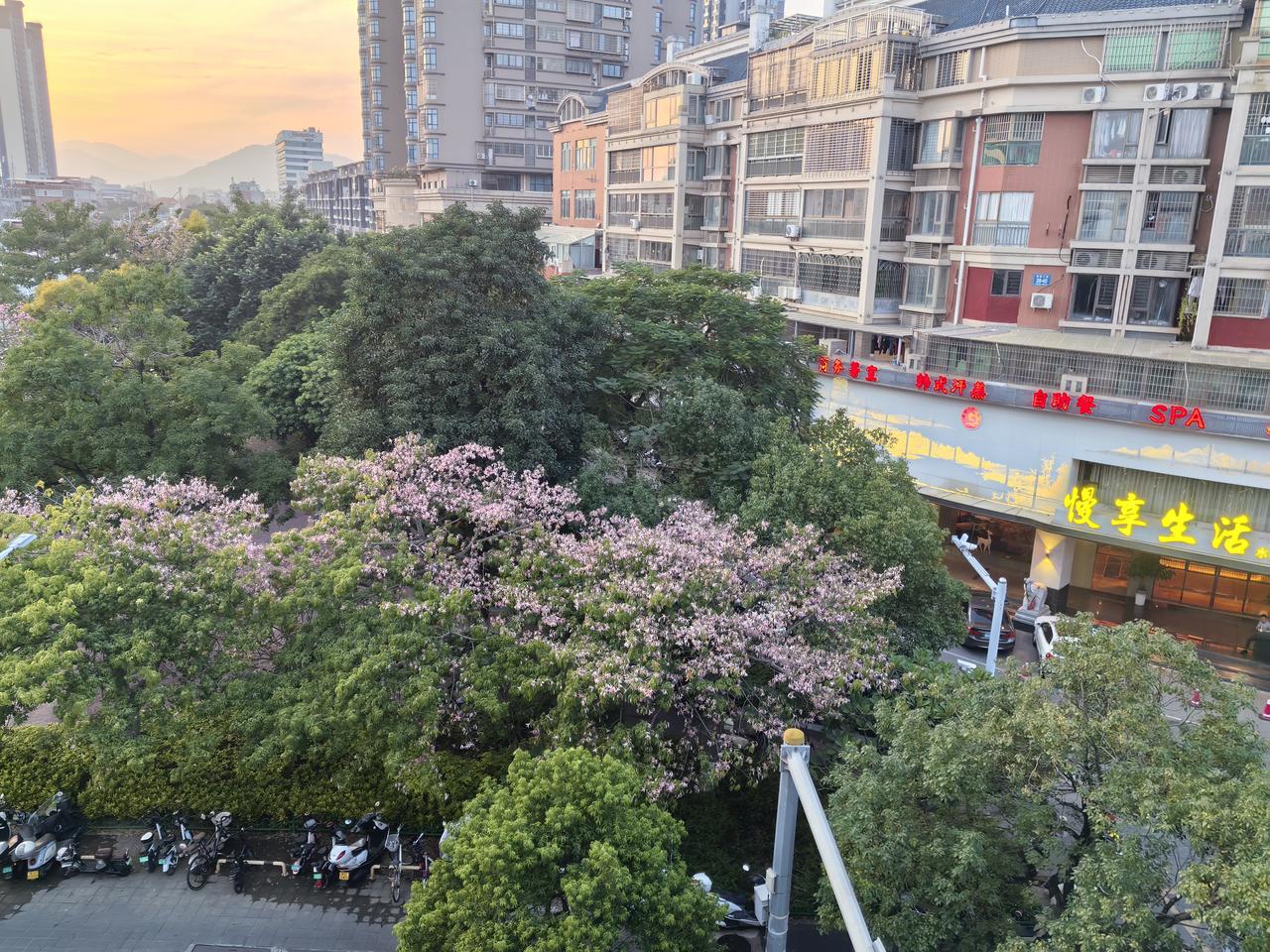 我这边花刚漫过窗台,你那里雪已盖了街牌——原来我们共享的不是同个冬天,是半程春,半程白。 一半花潮,一半冬 当我在闽南的暮色里撞见满树粉紫的风铃木时,手机里正弹出北京朋友拍的落雪街景。 楼下的花是不讲道理的热闹——鹅掌楸把粉白的花串垂成帘,风一吹就簌簌落进电动车筐,连临街茶馆的招牌都浸在花影里。傍晚的风裹着芒果叶的甜香,穿堂风掠过SPA店的玻璃门,把“慢享生活”的灯牌晃得暖黄。 可北方的朋友说,今天出门时哈气成雾,围巾裹到了眼角。银杏叶早落尽了,行道树举着秃枝,雪粒子砸在羽绒服上,“像给冬天敲章”。 这多像同个时空里的两个梦啊:一边是花潮漫过窗台,连风都是软的;一边是寒云压着楼群,呼吸都带着冰碴。我们分享彼此的天色,像交换两只不同季节的口袋——我把落瓣装进去,他把碎雪塞进来,隔着千里,竟也摸到了季节的褶皱。 其实哪有什么“南方总暖,北方常寒”?不过是此刻的花正好开,此刻的雪正好落。就像我镜头里的花会谢,他窗外的冰会融,这人间的春秋,从来是轮着来的温柔。