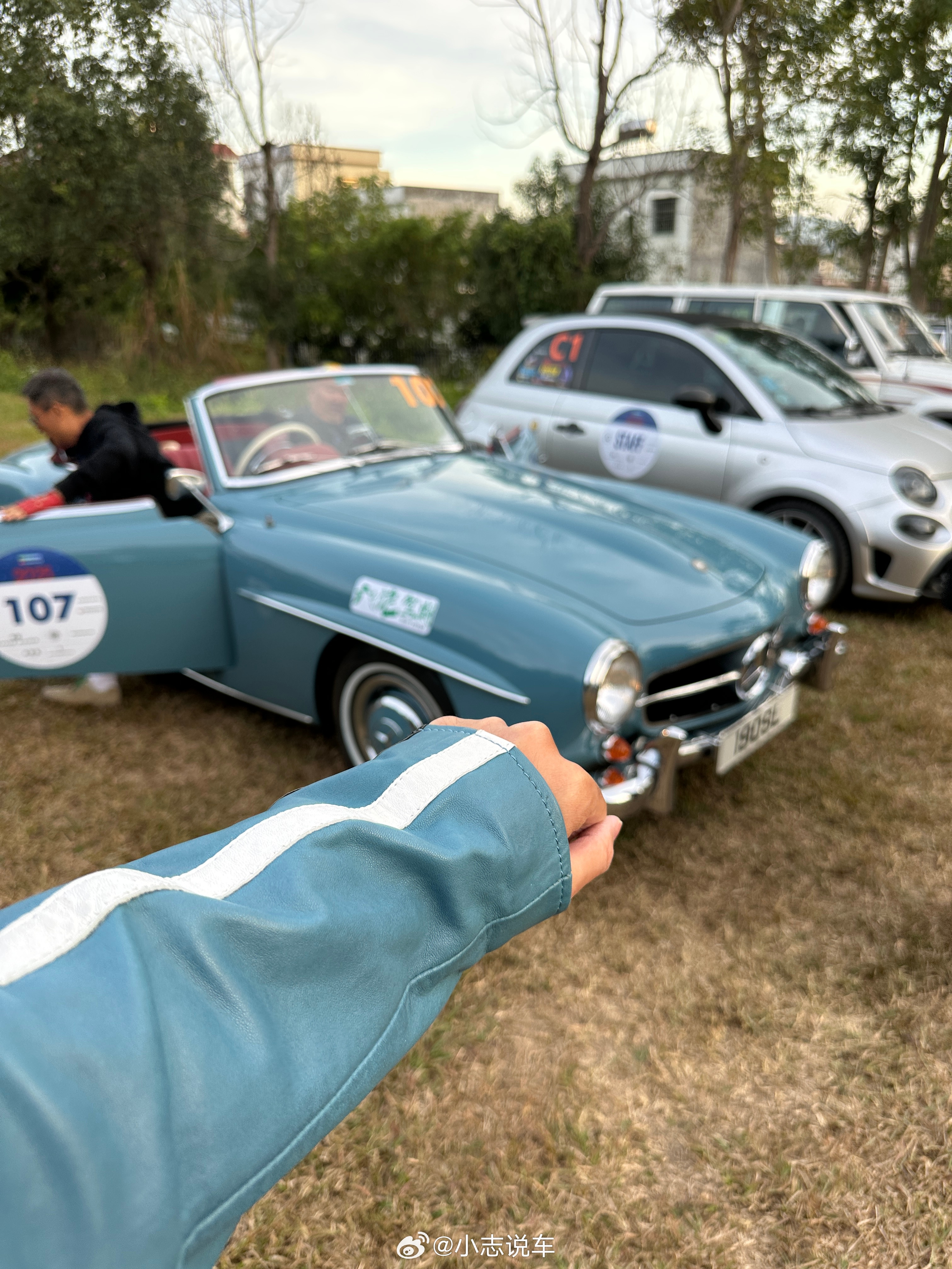 今日OOTD和一台香港梅赛德斯-奔驰190 SL“撞衫”~车主从德国收的一台“破烂”慢慢修复到今天这样,这就是玩经典老车的乐趣。最牛的是“190SL”这个车牌,5000港币搞的,冥冥之中注定的缘分。👍感谢wilson哥送的精美钥匙扣🔑奔驰 广州